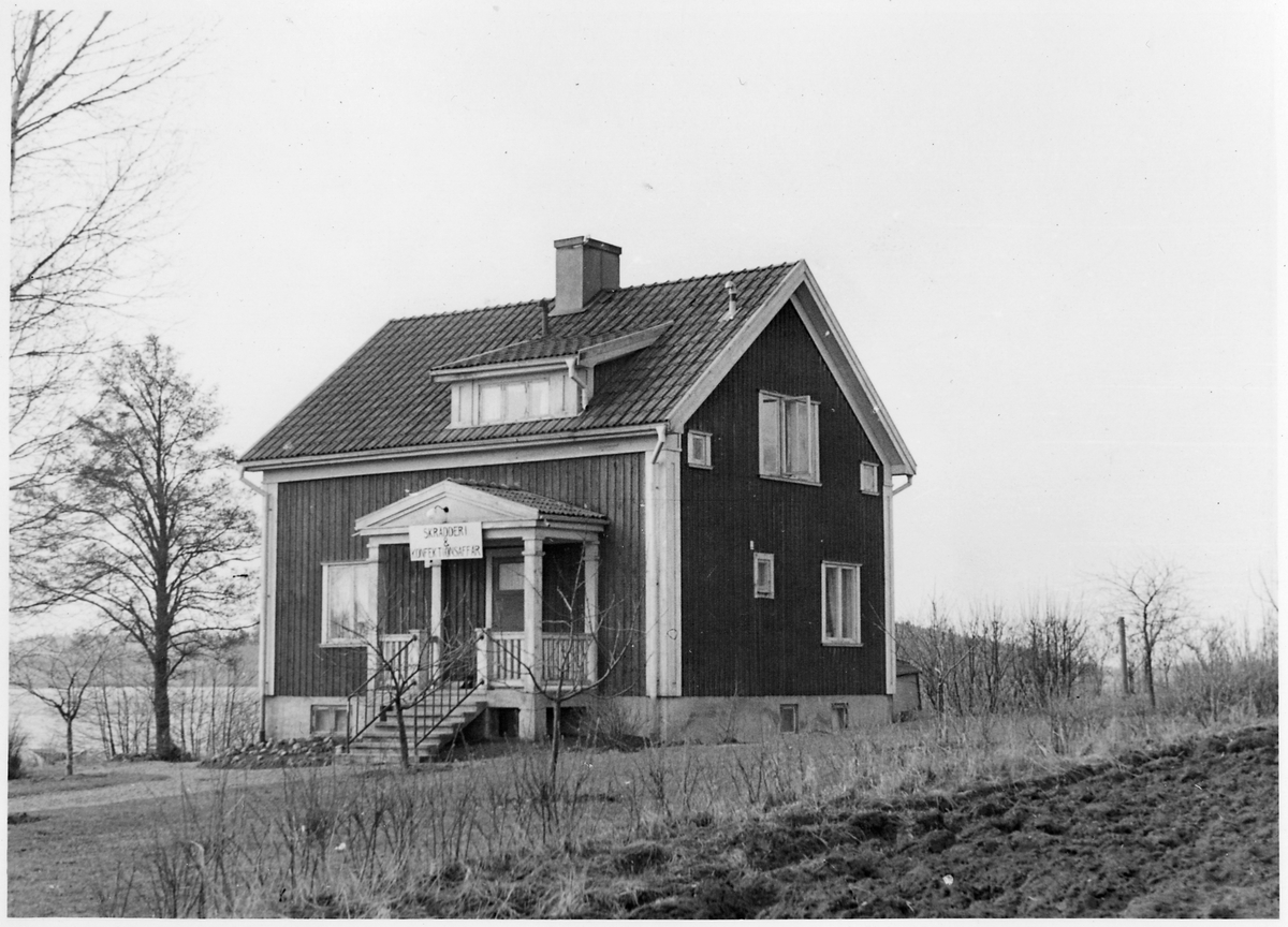 Vägstation T2, Askersund, Hammarsundet, brovaktarbostad. Ovanför dörren skylt "Skrädderi & Konfektionsaffär".