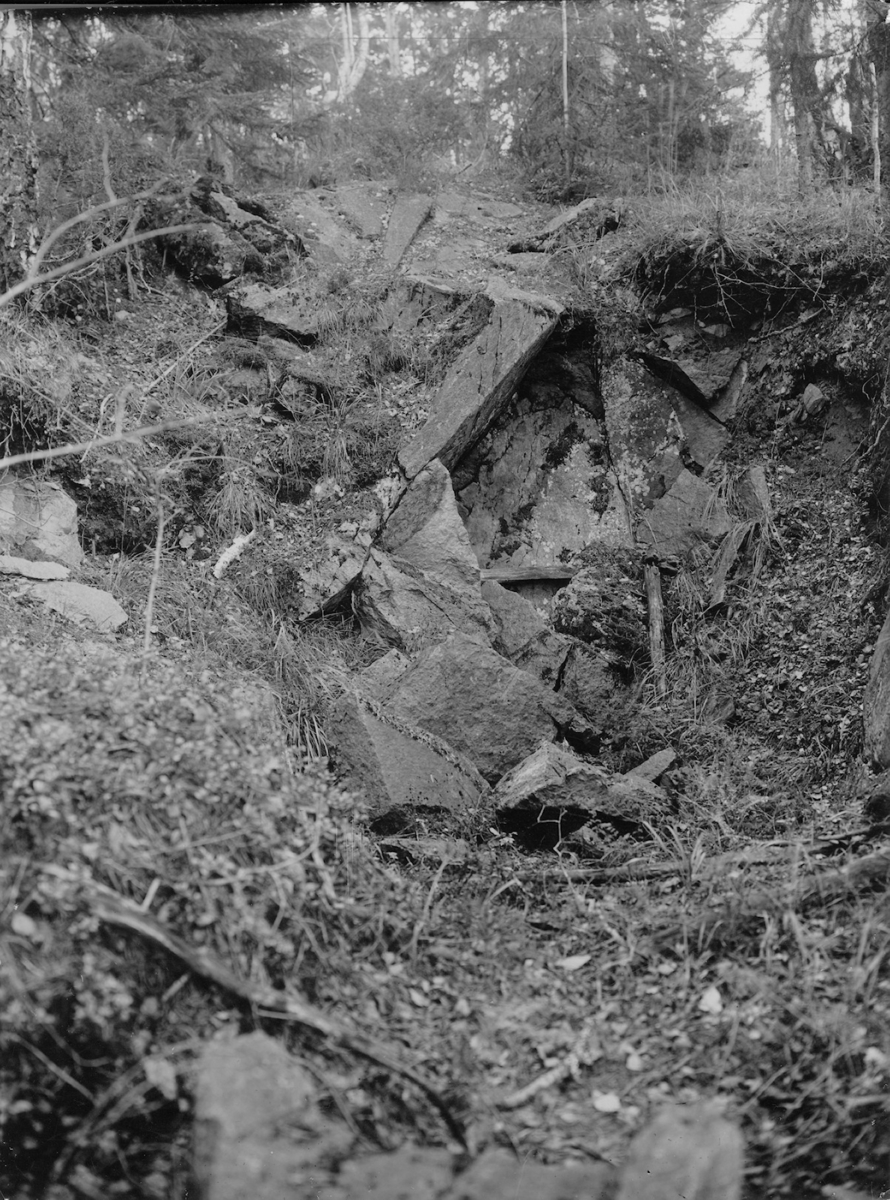 Fornlämning. Nössemark. Kullen uppkallad efter brottet Tälegropen.