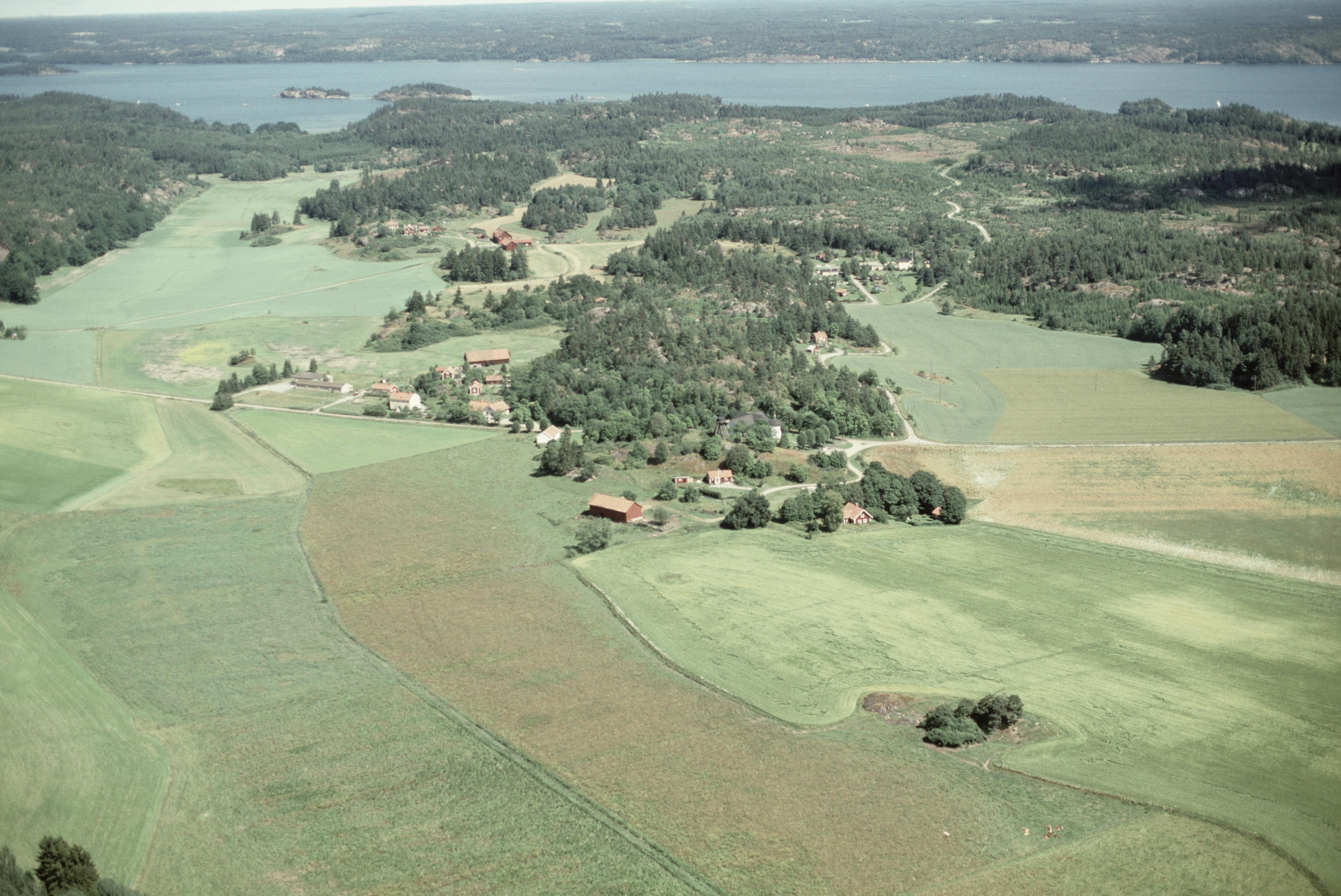 Mörkö kyrka och kyrkby. Kyrkan vid bildens mitt. Bilden är tagen mot (väderstreck): NO
