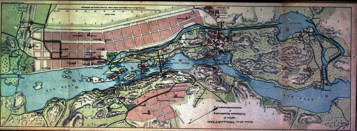 Den svenska historien. Karta över Trollhättan före 1916.