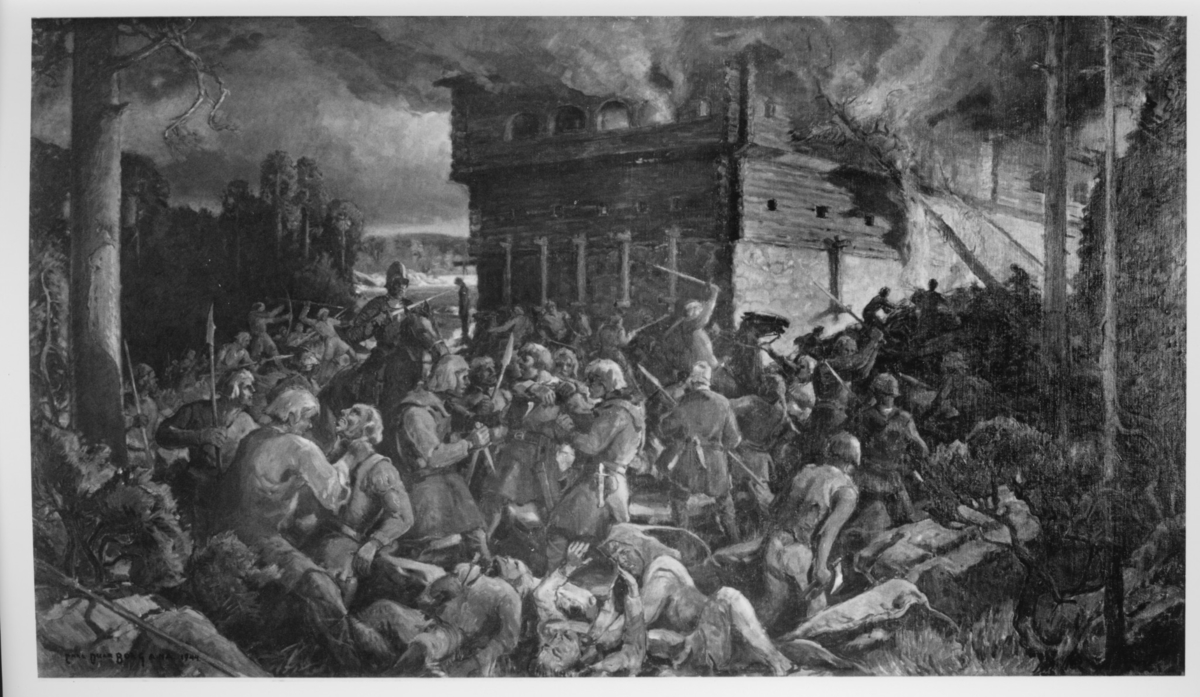 Bolstad, Dalaborgs förstöring. Reprofotografi av Carl Oskar Borgs konstverk.