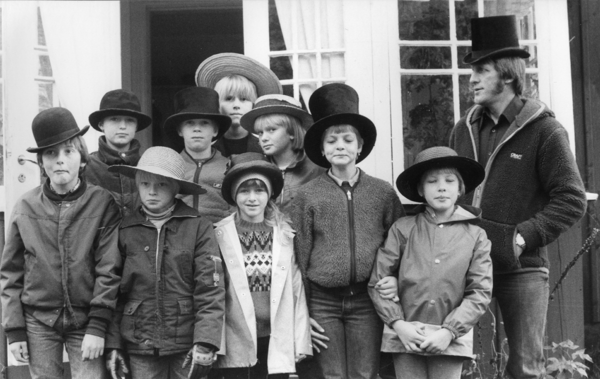 Tvärredsbornas gamla hattar i hembygdsgården Onsered när skolan var där på aktivitetsdag.