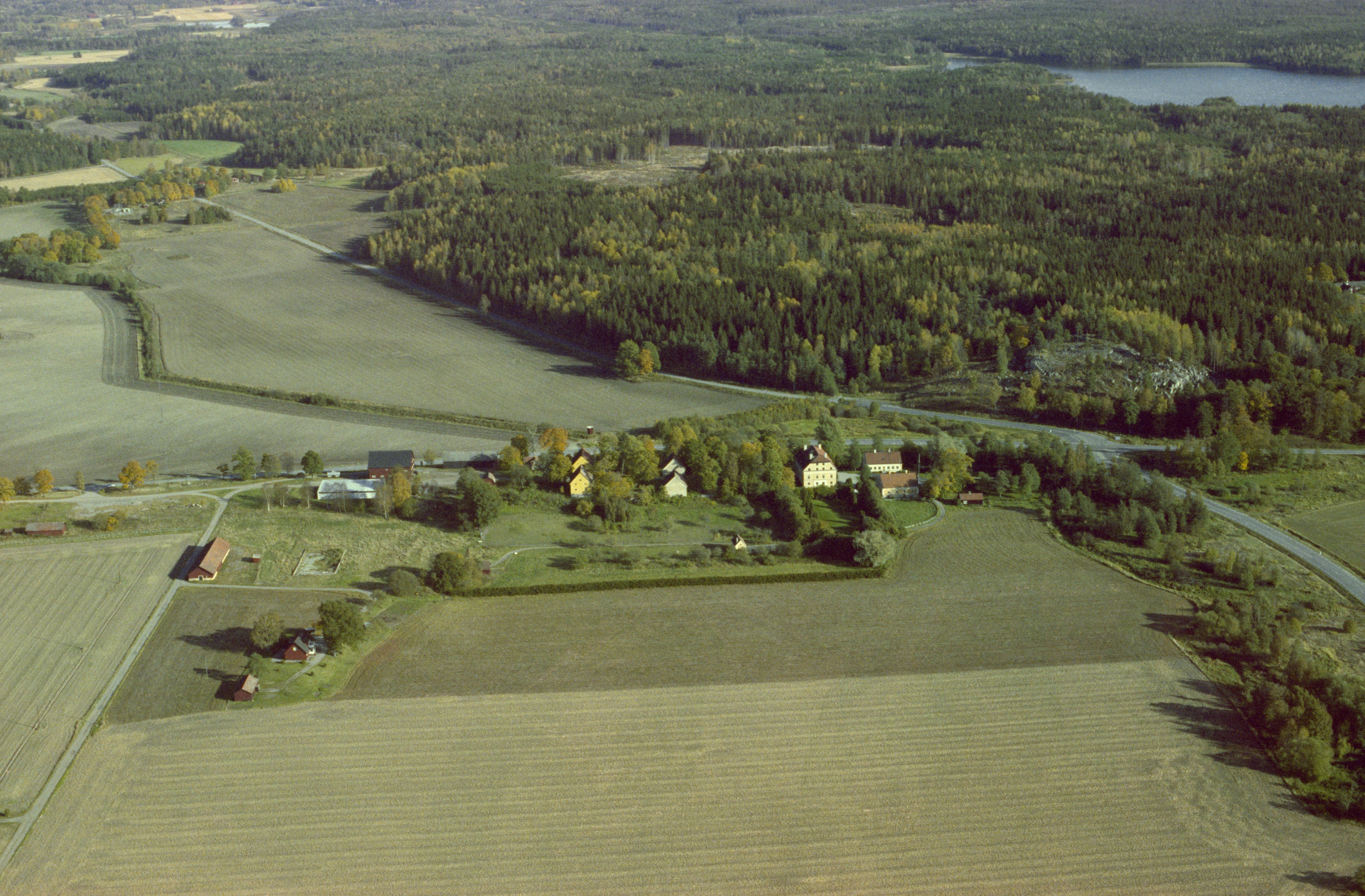Aspån i bildens högra del. Äs herrgård RAÄnr Julita 13:1 och Äs by vid bildens mitt. Sjön Aspen uppe till höger. Bilden är tagen mot (väderstreck): OSO