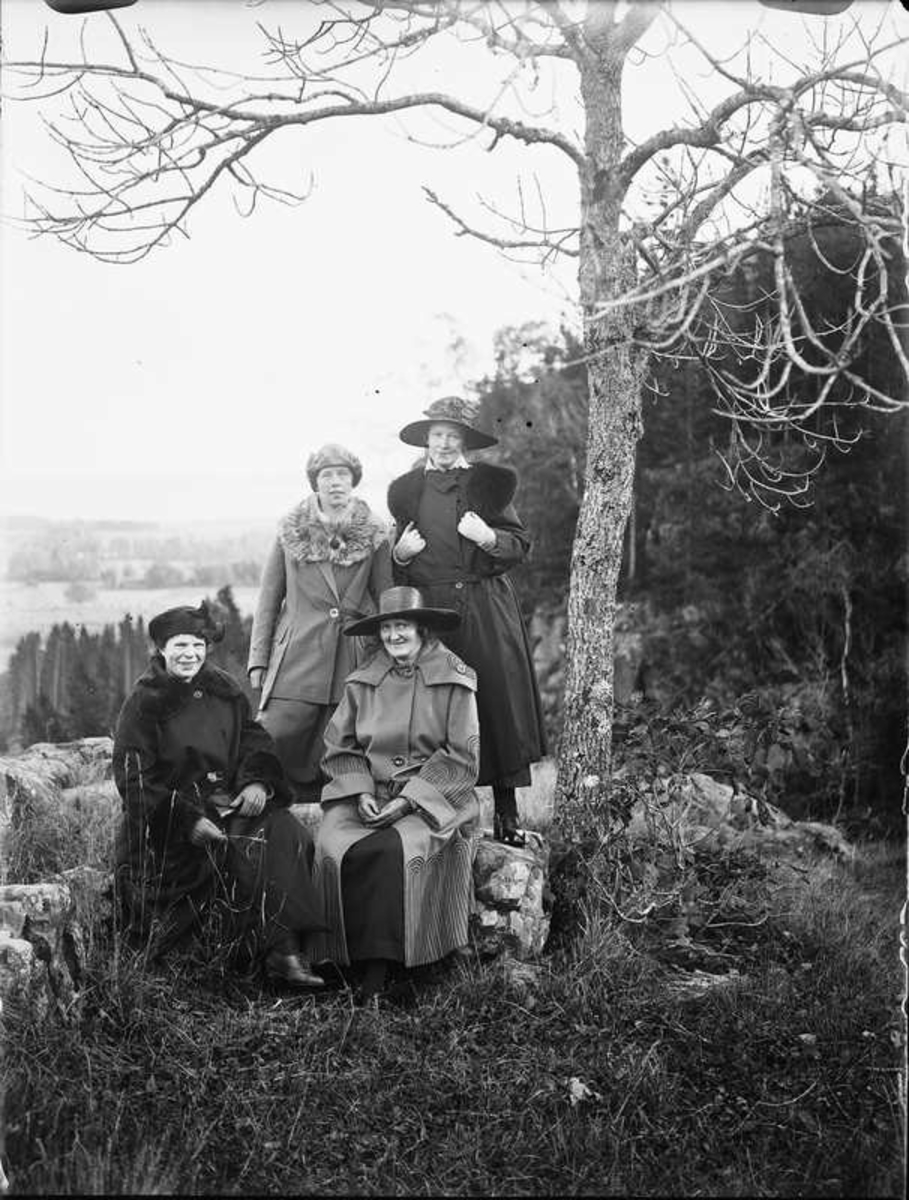 Fyra kvinnor vid utsikt. Halle el. Hunneberg?