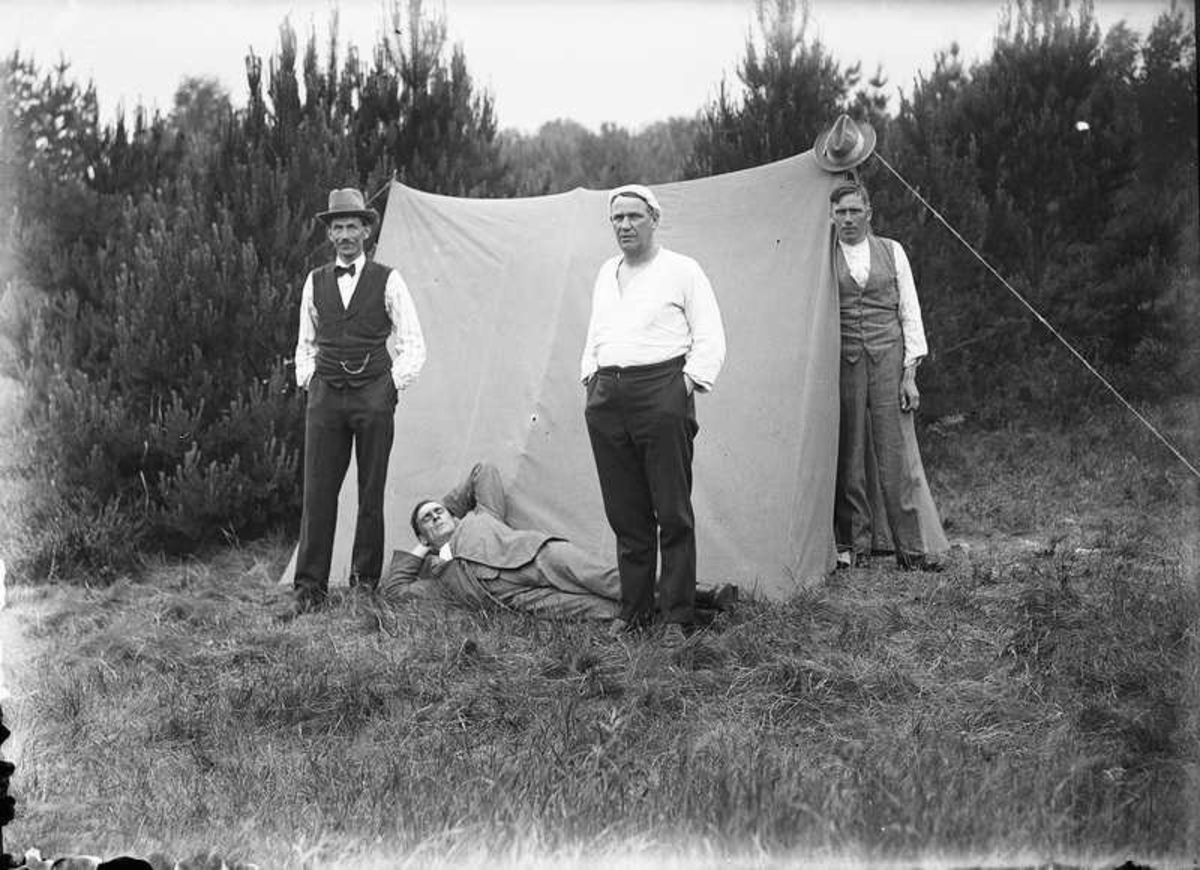 Fyra män vid ett tält.