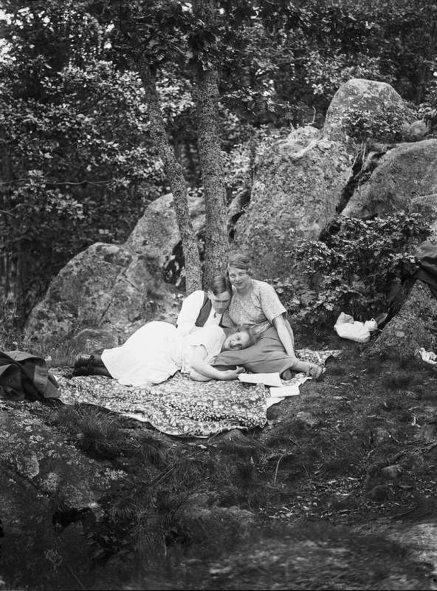 Två kvinnor och en man. Mannen är sannolikt fotografen och upphovsmannen till bildsamlingen.
