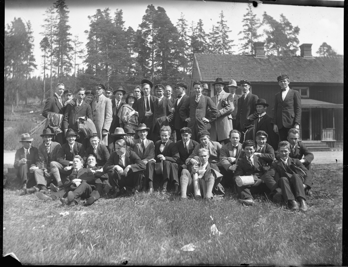 Grupp av seminaristerna med lärare på studieresa till Limmareds glasbruk.