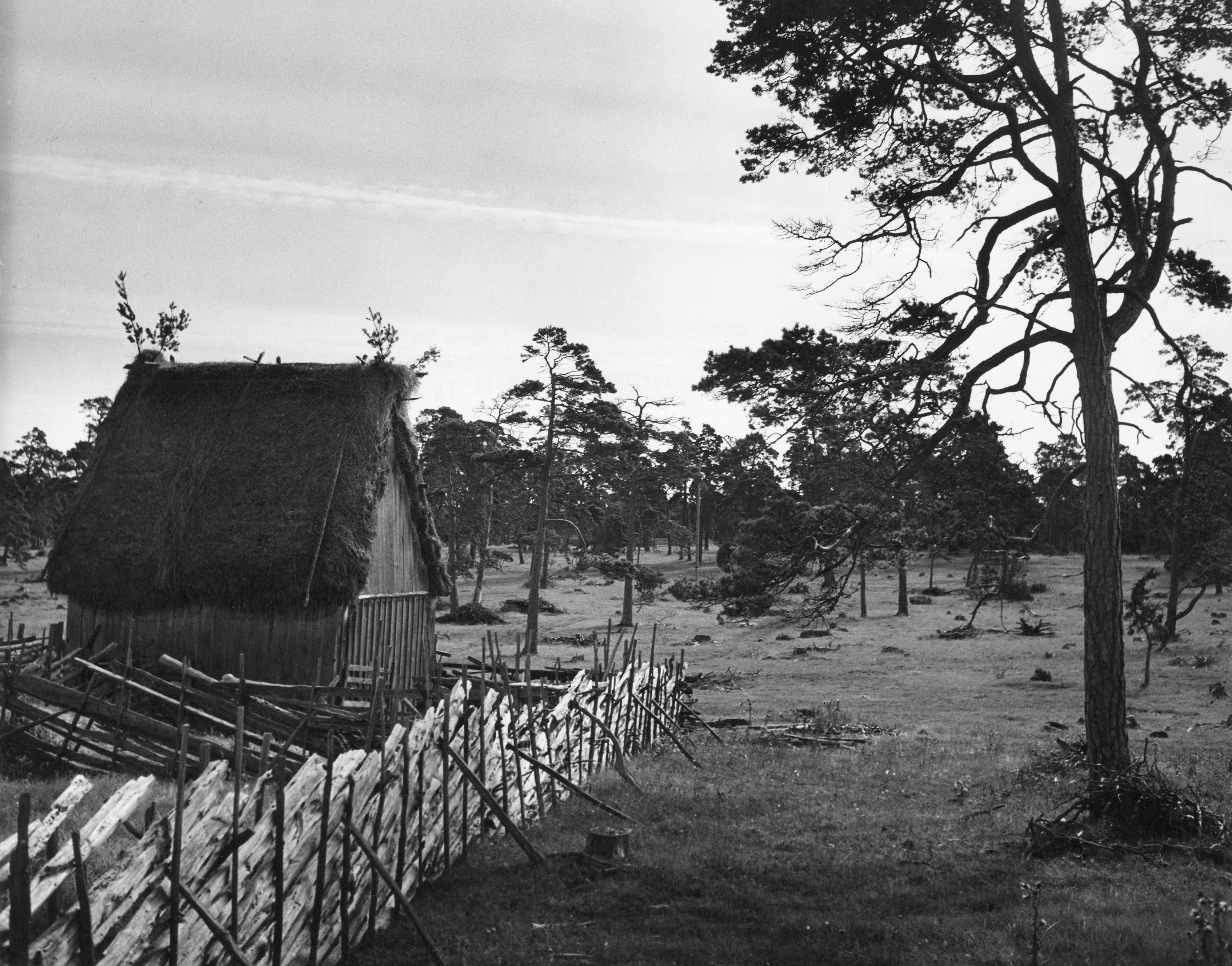 Fähus / lambgift med agtak i bildens vänstra del. Bilden troligen från mitten av 1960-talet.