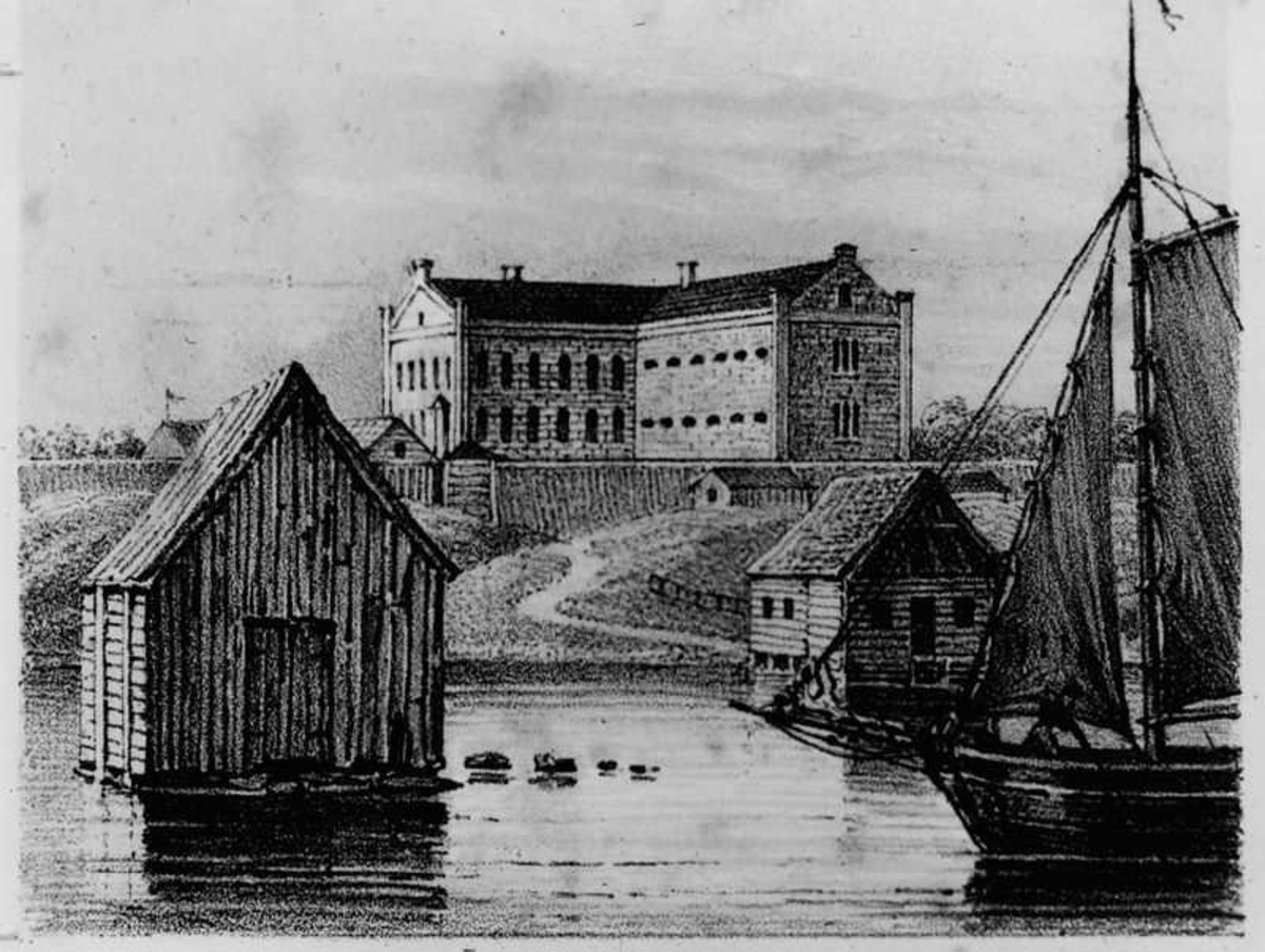 Södra delen av hamnen. Teckning av F A Zettergren Fängelset Vänersborg