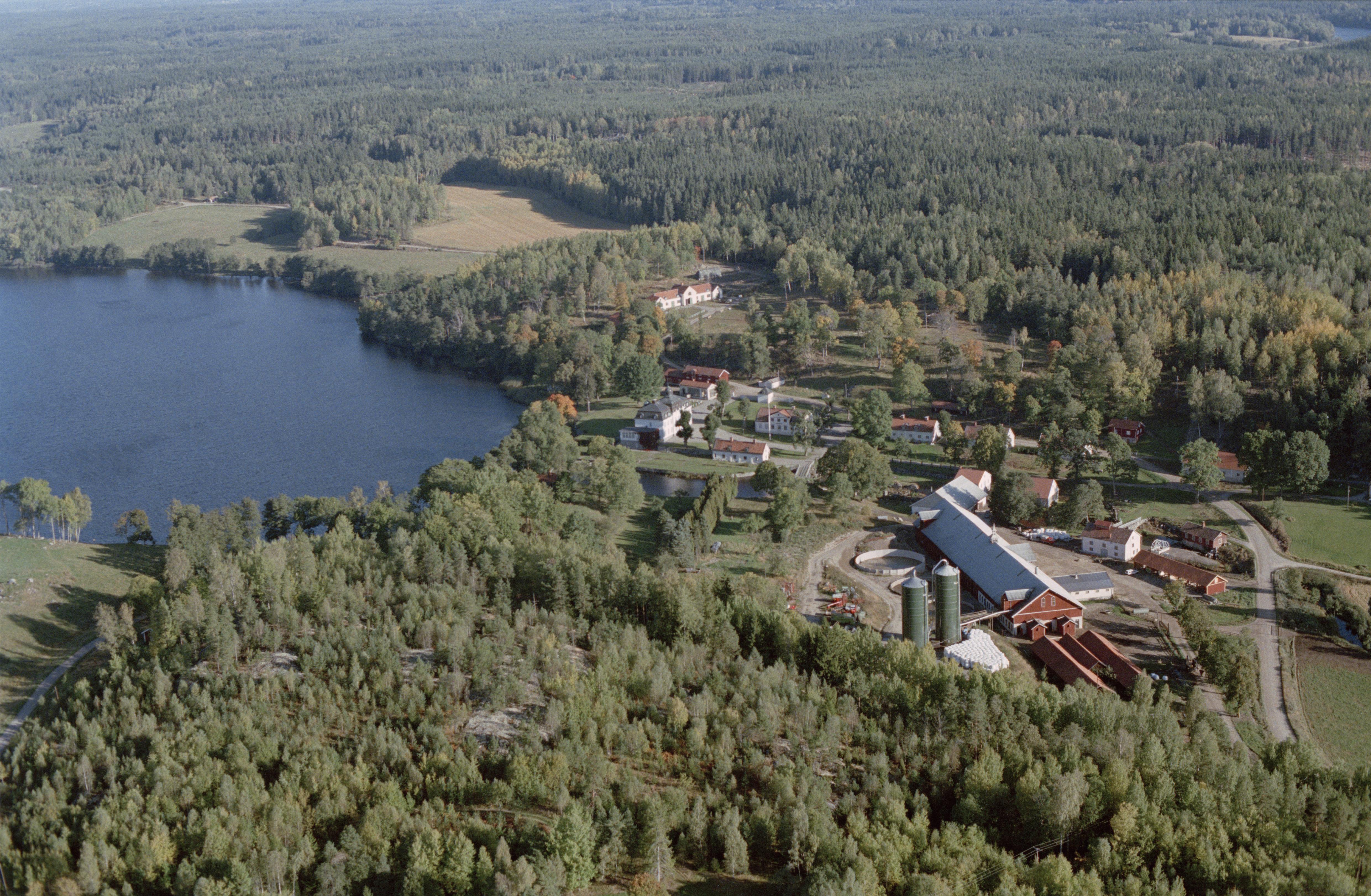 Skeppsta bruk vid Skeppstaåns mynning i sjön Barsättern. Bruksområde RAÄnr Gåsinge-Dillnäs 300:1. Vid bildens mitt Skeppsta herrgård RAÄnr Gåsinge-Dillnäs 379:1-2. Bilden är tagen mot (väderstreck): NNO