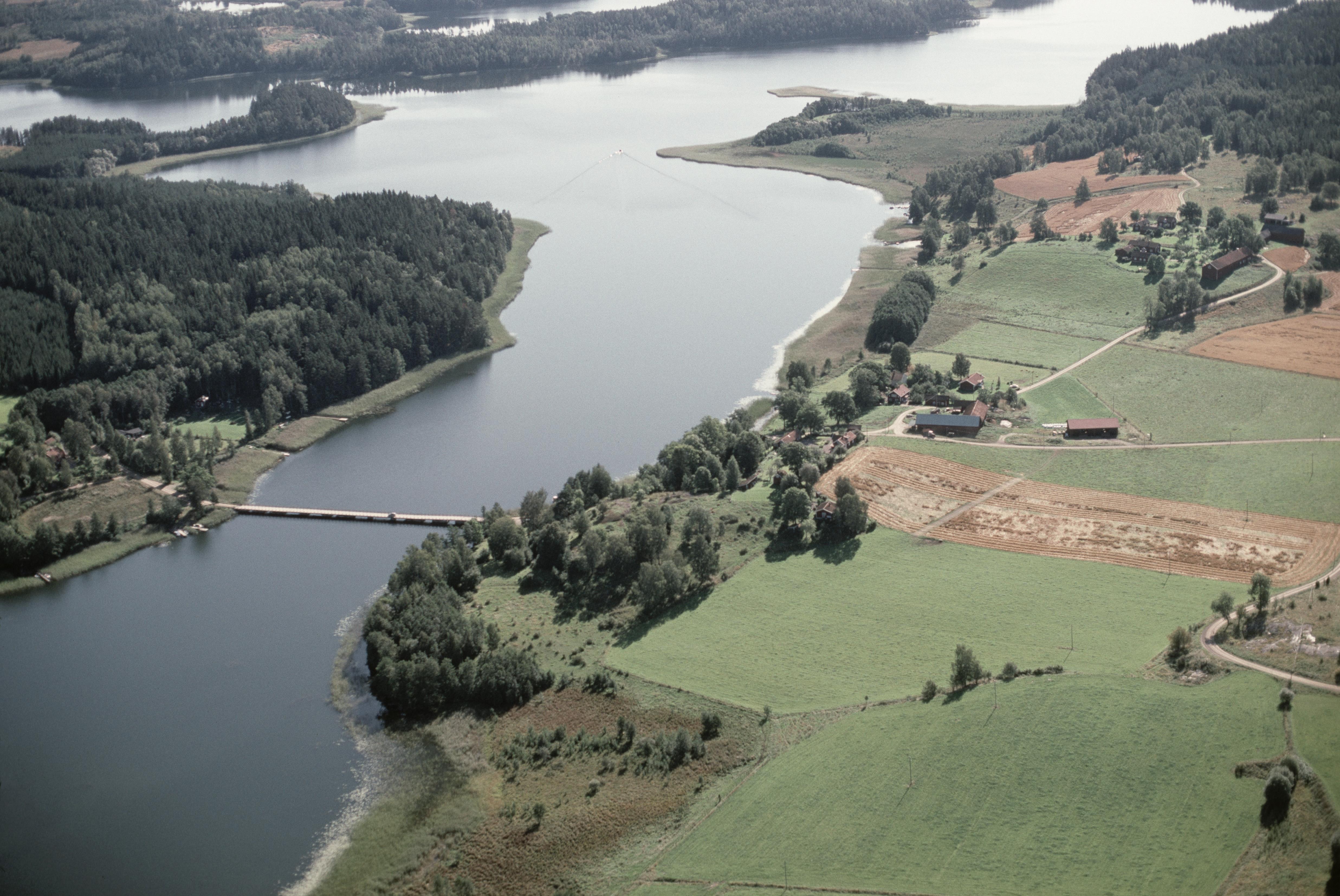 Viken Inbåven i sjön Båven, vid gränsen mellan socknen Gryt (bildens nedre del), Björnlunda (uppe till vänster) och Hyltinge (uppe till höger). Till höger om bildens mitt fyndplats (skafthålsyxa) RAÄnr Gryt 185:1. Bilden är tagen mot (väderstreck): SO