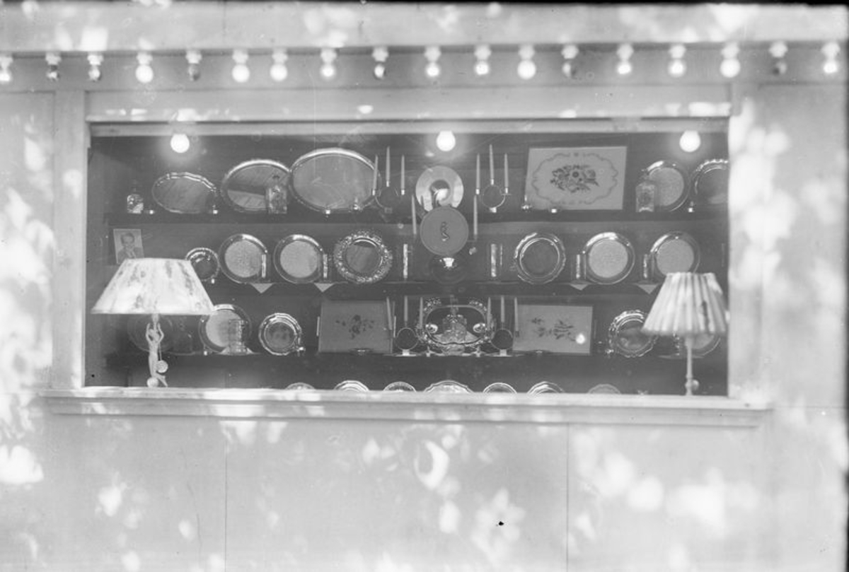 Titel: Utställning av husgeråd. Föreningstjänsts lotterikiosker.
