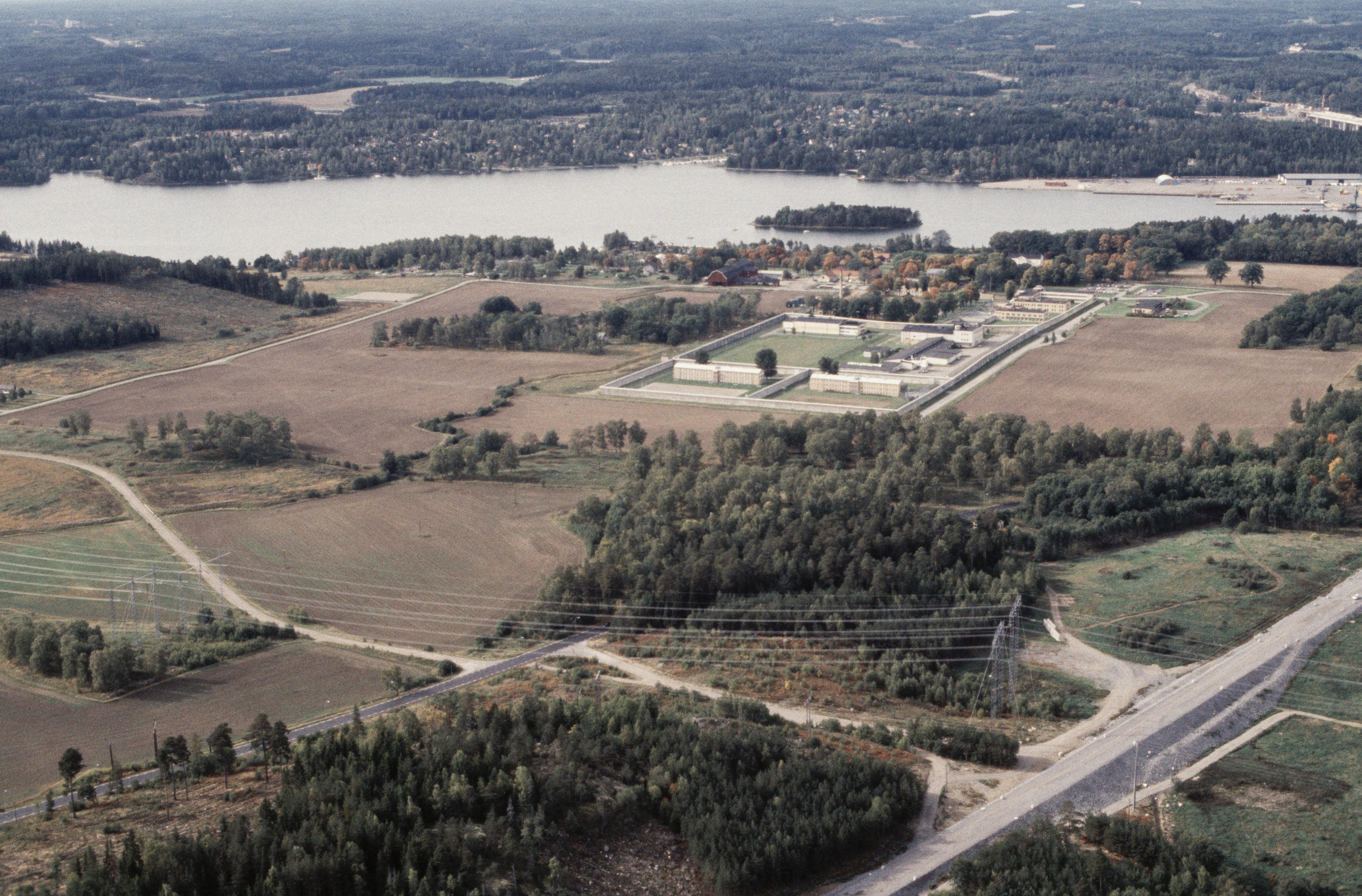 I bildens övre del Anstalten Hall vid Igelstaviken sydöst om Södertälje stad. Till höger över bildens mitt Hågelby gamla tomt RAÄnr Östertälje 242:1. Bilden är tagen mot (väderstreck): SV