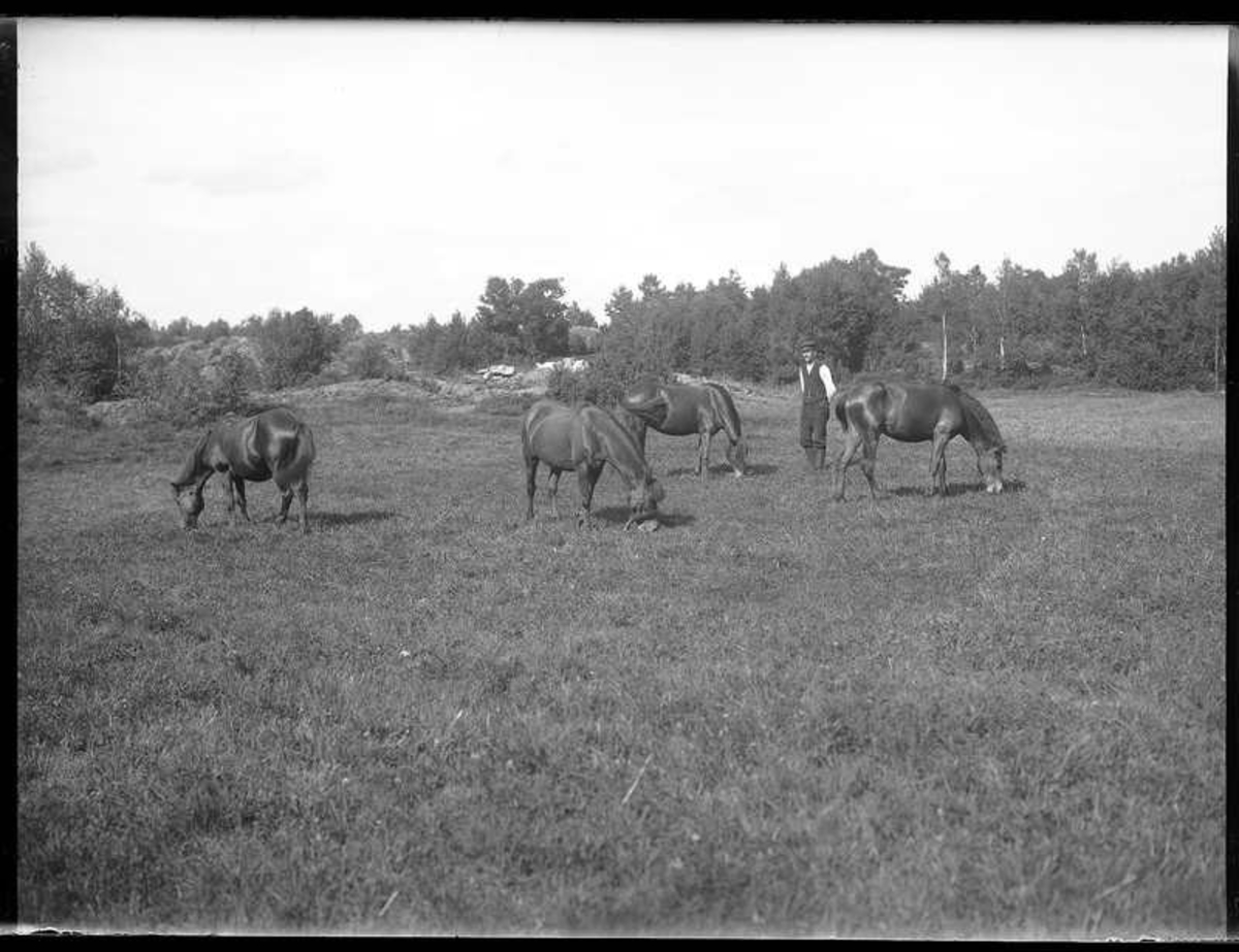 Abraham Jonsson, Hjärtum 1875-01-13, bland hästarna på Torpet (Arnstorp)