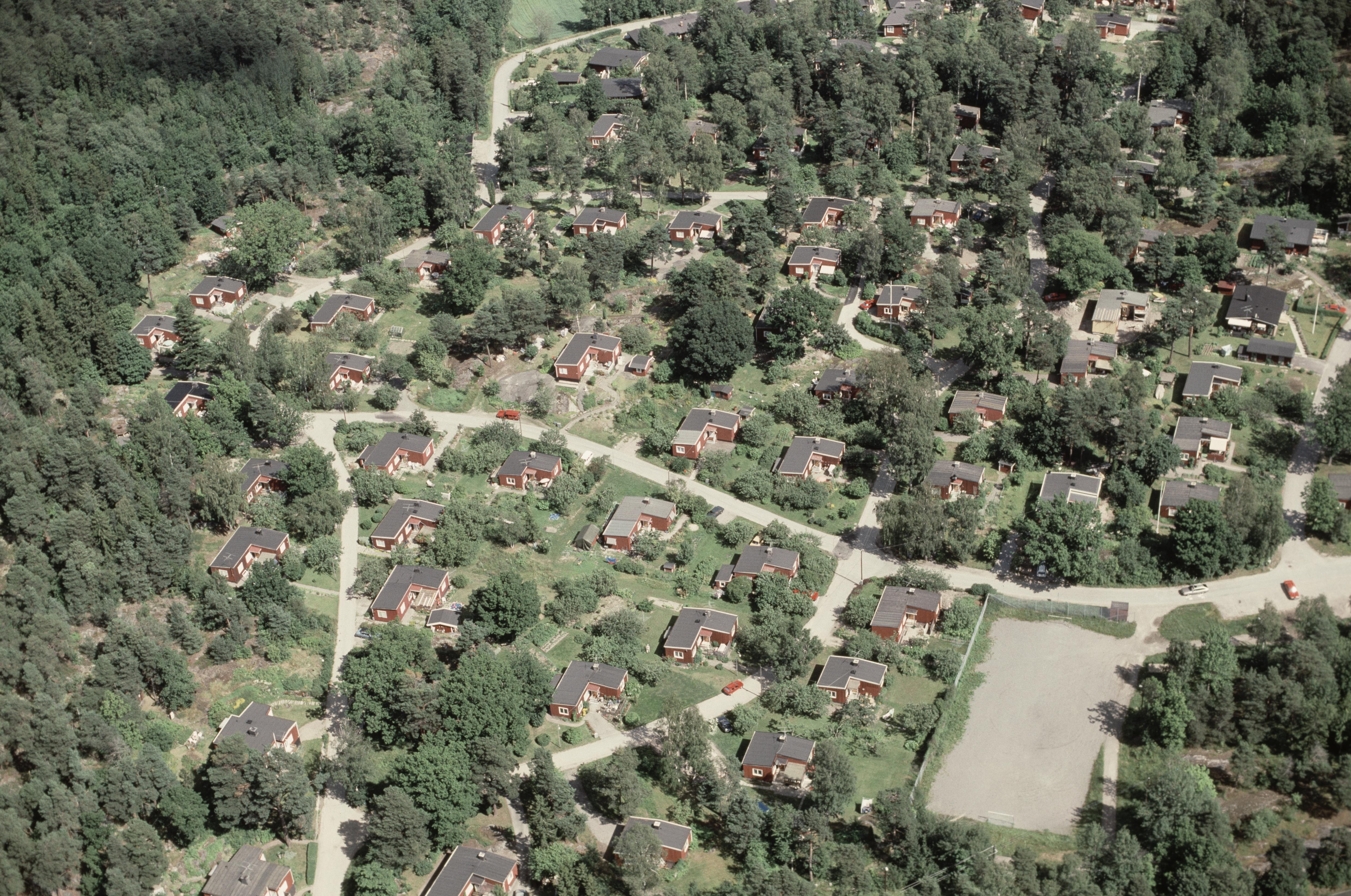 Bostadsområdet Höjdhagen i Gustavsbergs tätort. Hällristning RAÄnr Gustavsberg 31:1 nere till höger. Bilden är tagen mot (väderstreck): ONO