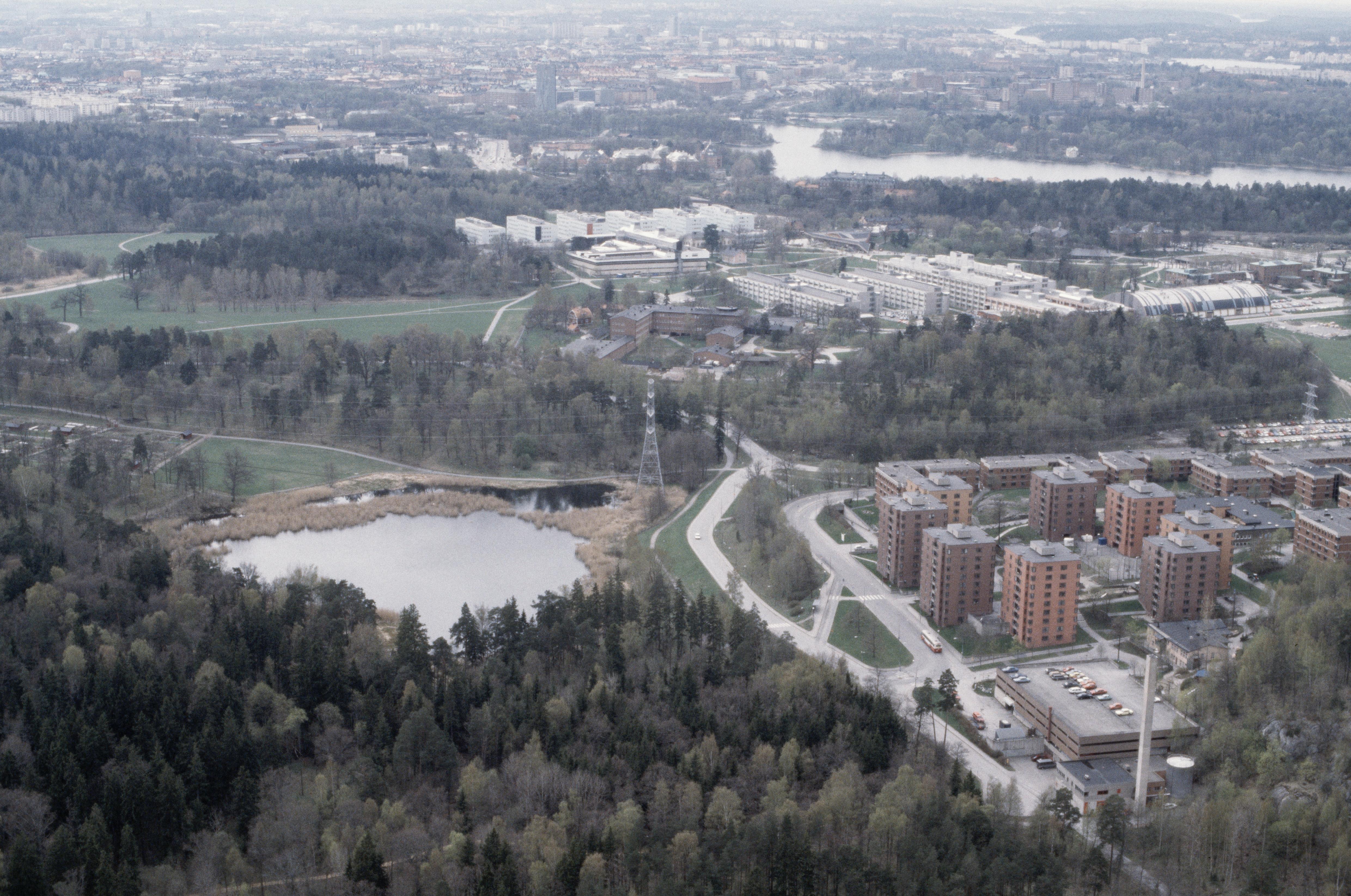 I bildens nedre del stensättning RAÄnr Stockholm 117:1. Vid bildens mitt sjön Lappkärret och bostadsområdet Lappkärrsberget. Över bildens mitt Stockholms universitet m.fl. vid Brunnsviken mot Solna socken. I bildens övre del Stockholms innerstad. Bilden är tagen mot (väderstreck): SV
