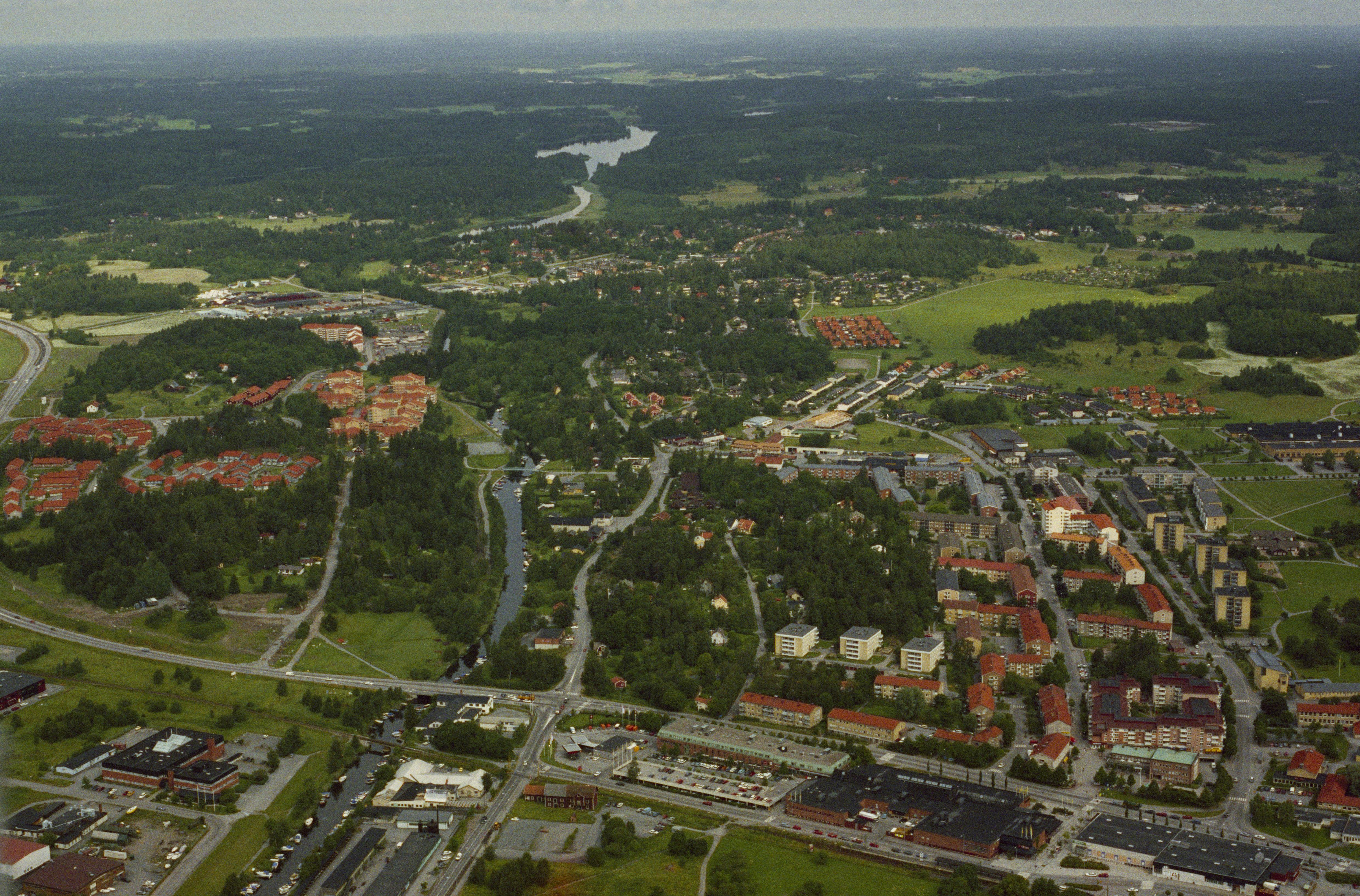 Åkersberga tätort. Åkers kanal mot Garnsviken i bildens övre del. Bilden är tagen mot (väderstreck): NNV