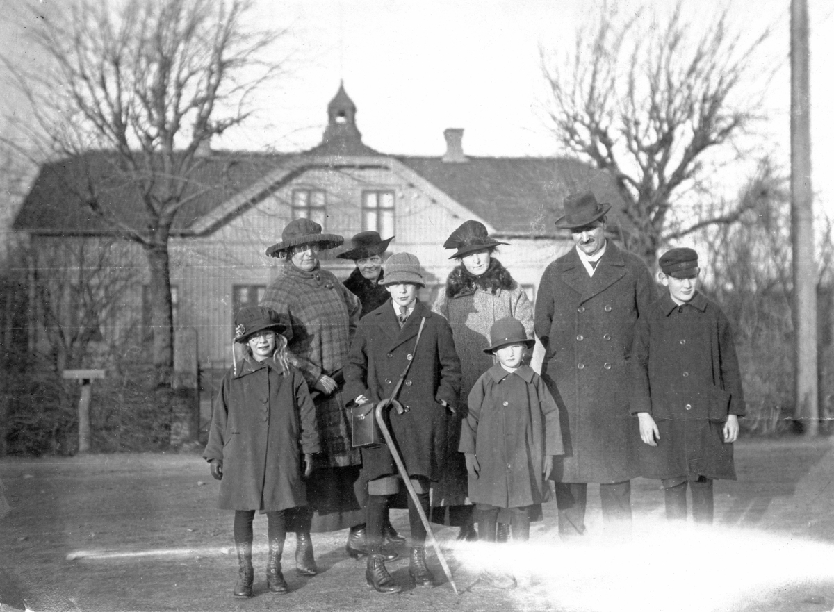 Södra Lerum, familjen Frey med vänner vid tingshuset