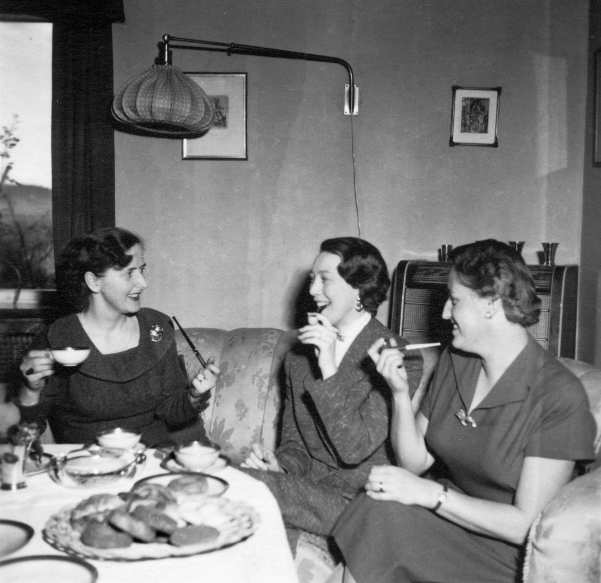 Svenska rökpipfabriken i Lerum. Reklambild piprökande damer