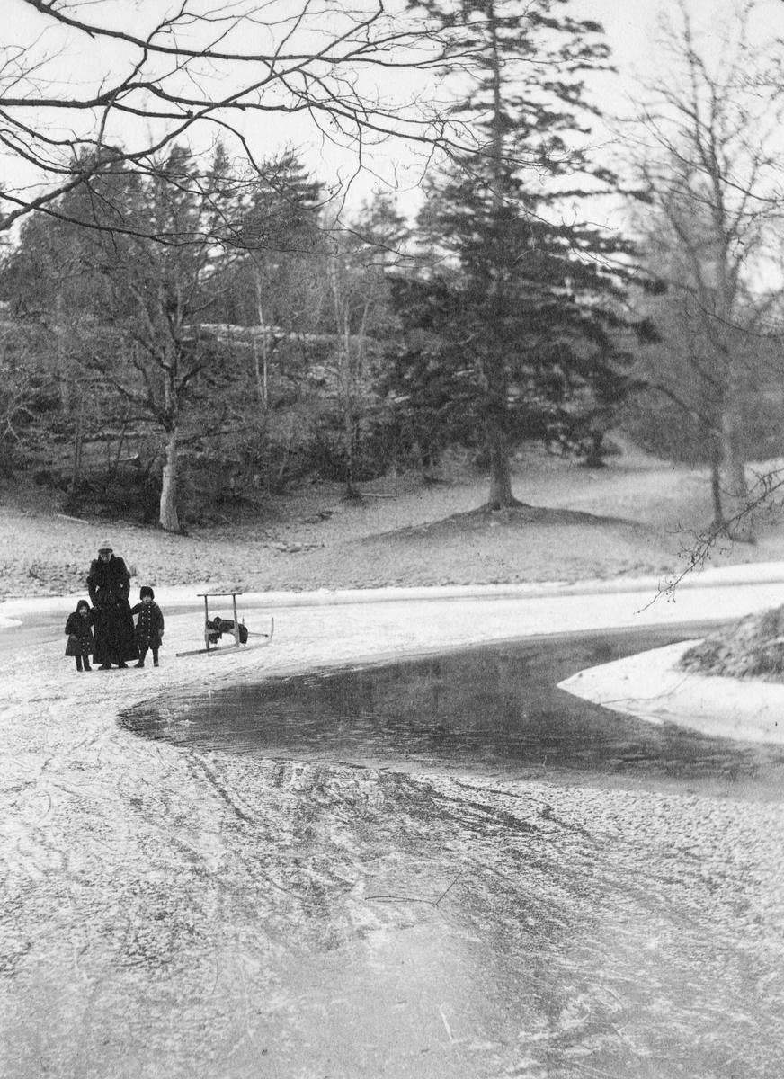 Lerums socken, Aspenäs herrgård. På sjön Aspens is. Elsa, Hermine och Edward Jr Jacob