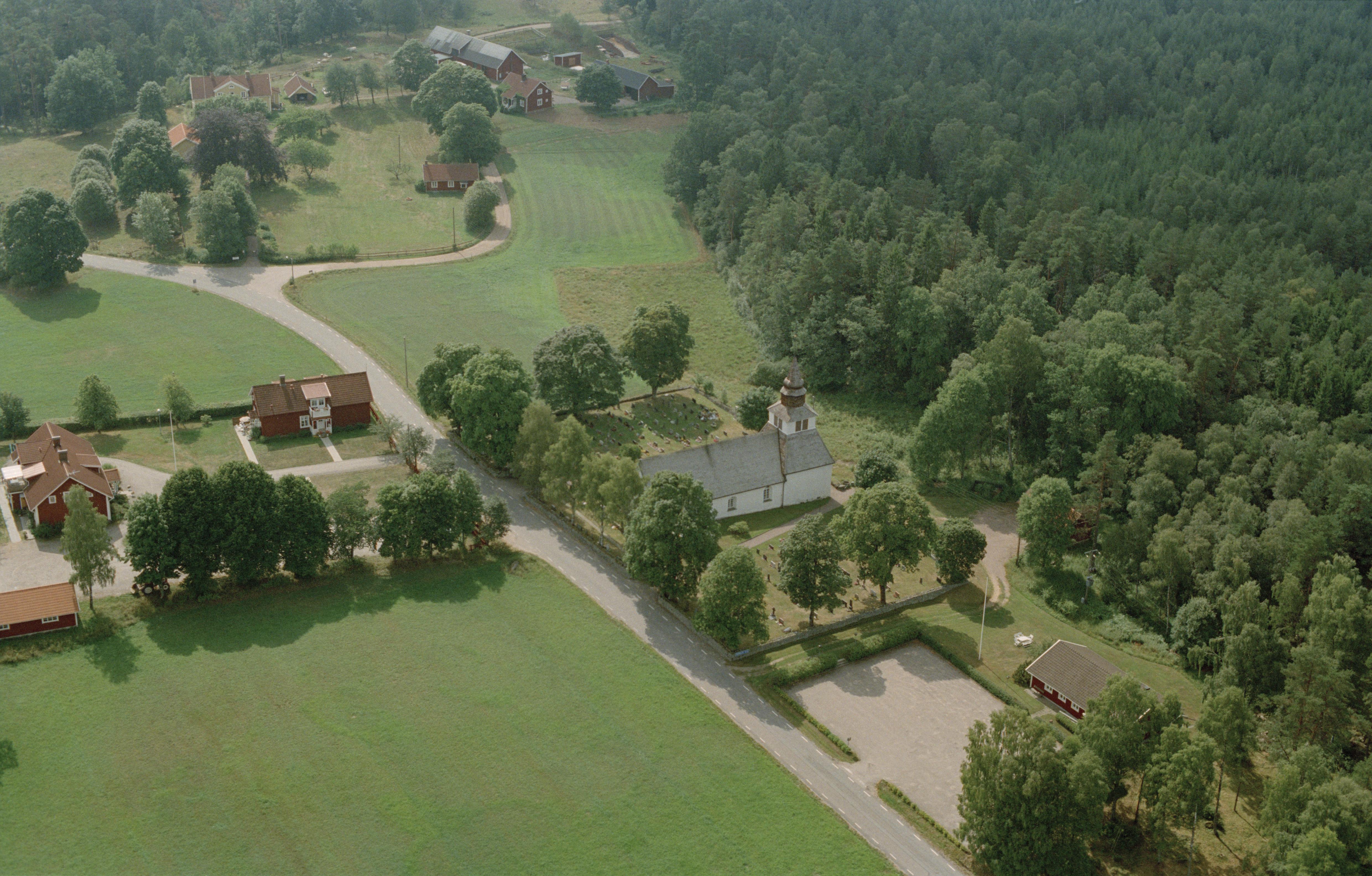 Femsjö kyrka och kyrkby. Bilden är tagen mot (väderstreck): SV