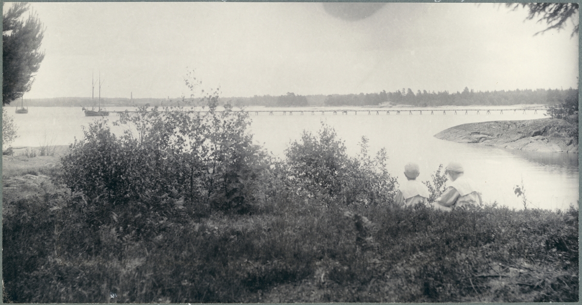 Vik av Vänern vid Halleberg. Margeretebergs tegelbruk i bakgrunden