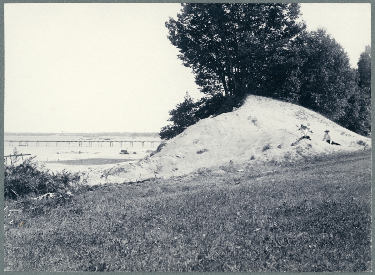 Vik av Vänern, del av den höga sandvallen vid Gaddetorp. Margeretebergs tegelbruk i bakgrunden