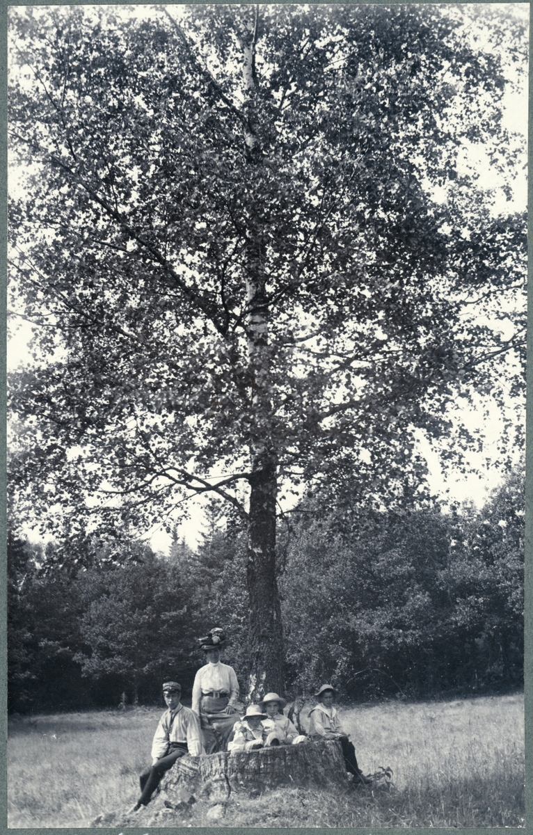 Halleberg. ”Stubben efter Hallebergs äldsta ek (med björk växande i stubben) på Snipan.”