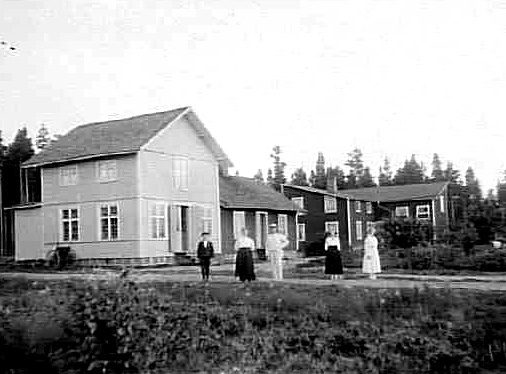 Handlare Karlsson med familj framför affären.