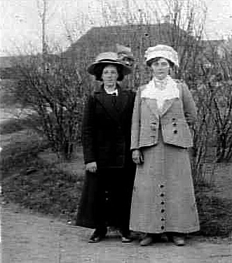 TVÅ FINKLÄDDA KVINNOR STÅENDE UTOMHUS