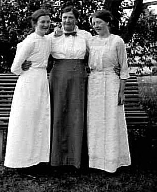 MOR MED SINA DÖTTRAR I TRÄDGÅRDEN.