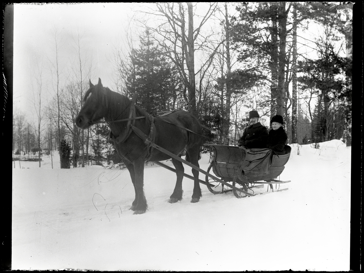 Johan Ludvig Olsson och fru Olivia Vikander på slädfärd