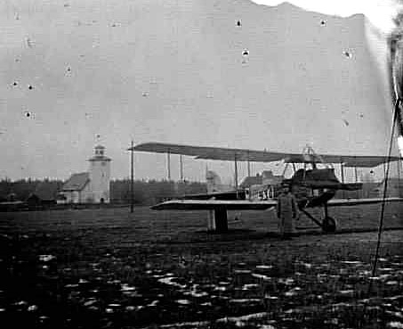 Flygplanet är en Albatros, som 1919 användes av Flygkompaniet som skolflygplan.