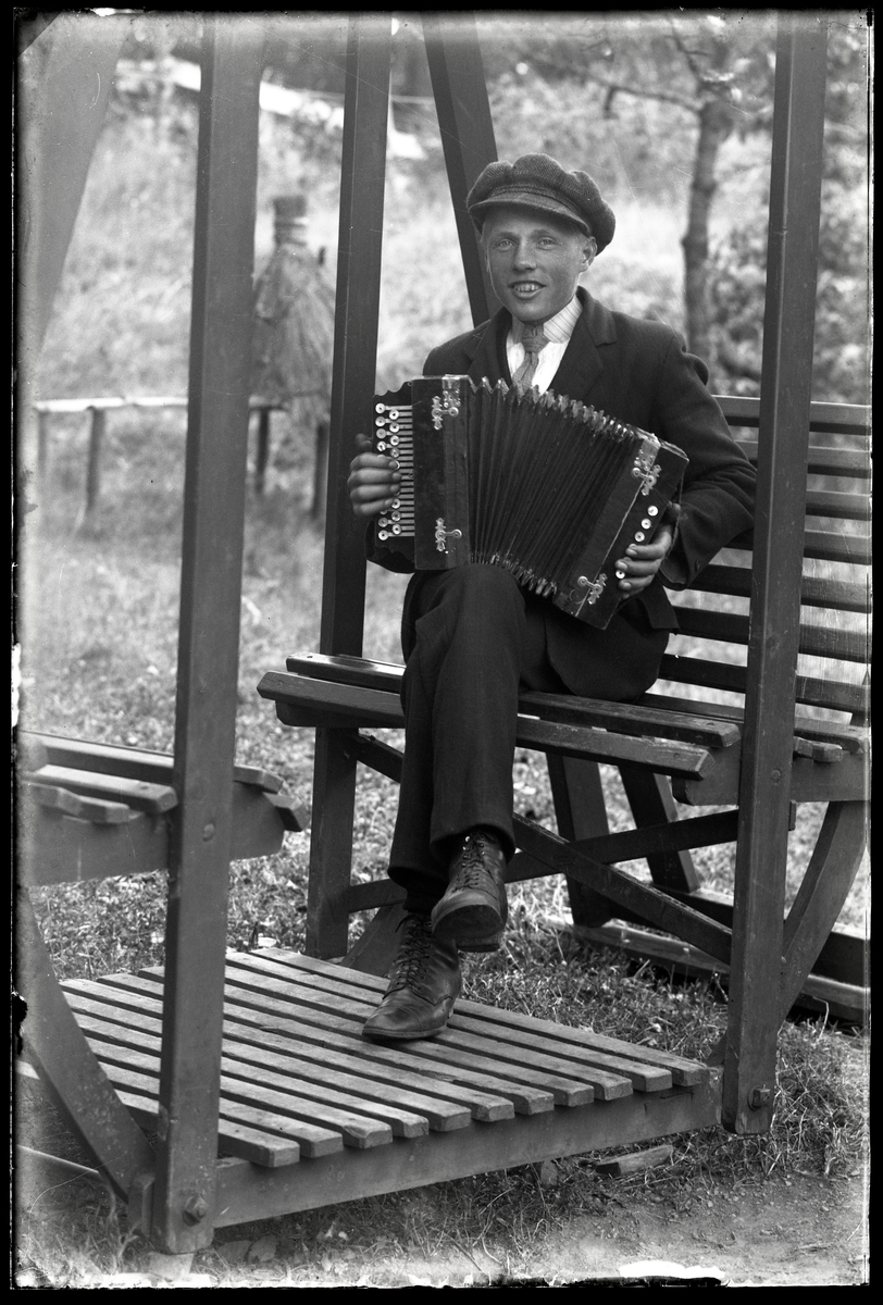 Man gungar i trädgårdsgunga