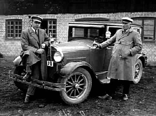 KÖPMAN GERHERD KARLSSON, TÖREBODA SAMT YTTERLIGARE EN MAN VID EN PERSONBIL REG NR R570 AV 1929 ÅRS MODELL.