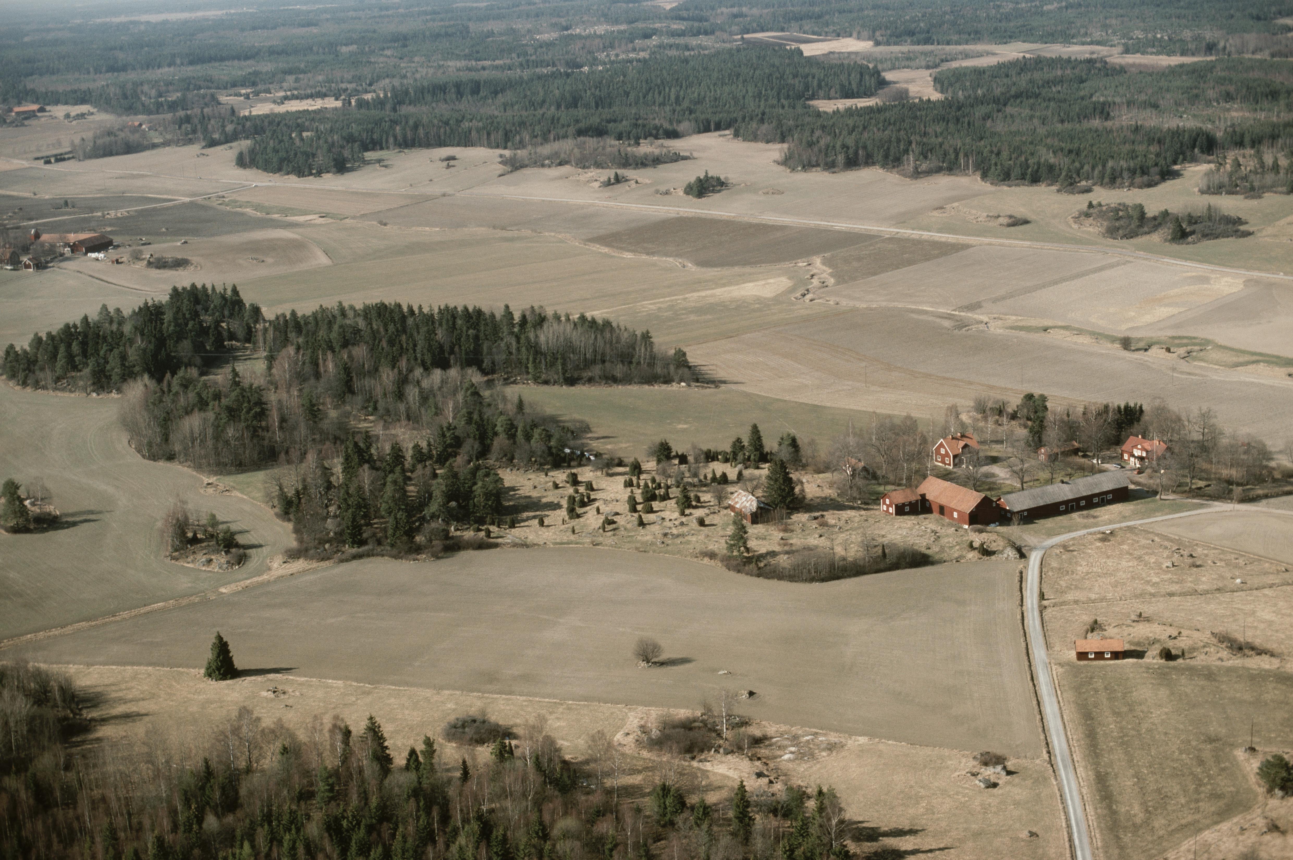 Prästgården i Uppsala-Näs i Näsbäckens dalgång. Vid bildens mitt hög RAÄnr Uppsala-Näs 65:1. Över bildens mitt Stabby. Bilden är tagen mot (väderstreck): NV