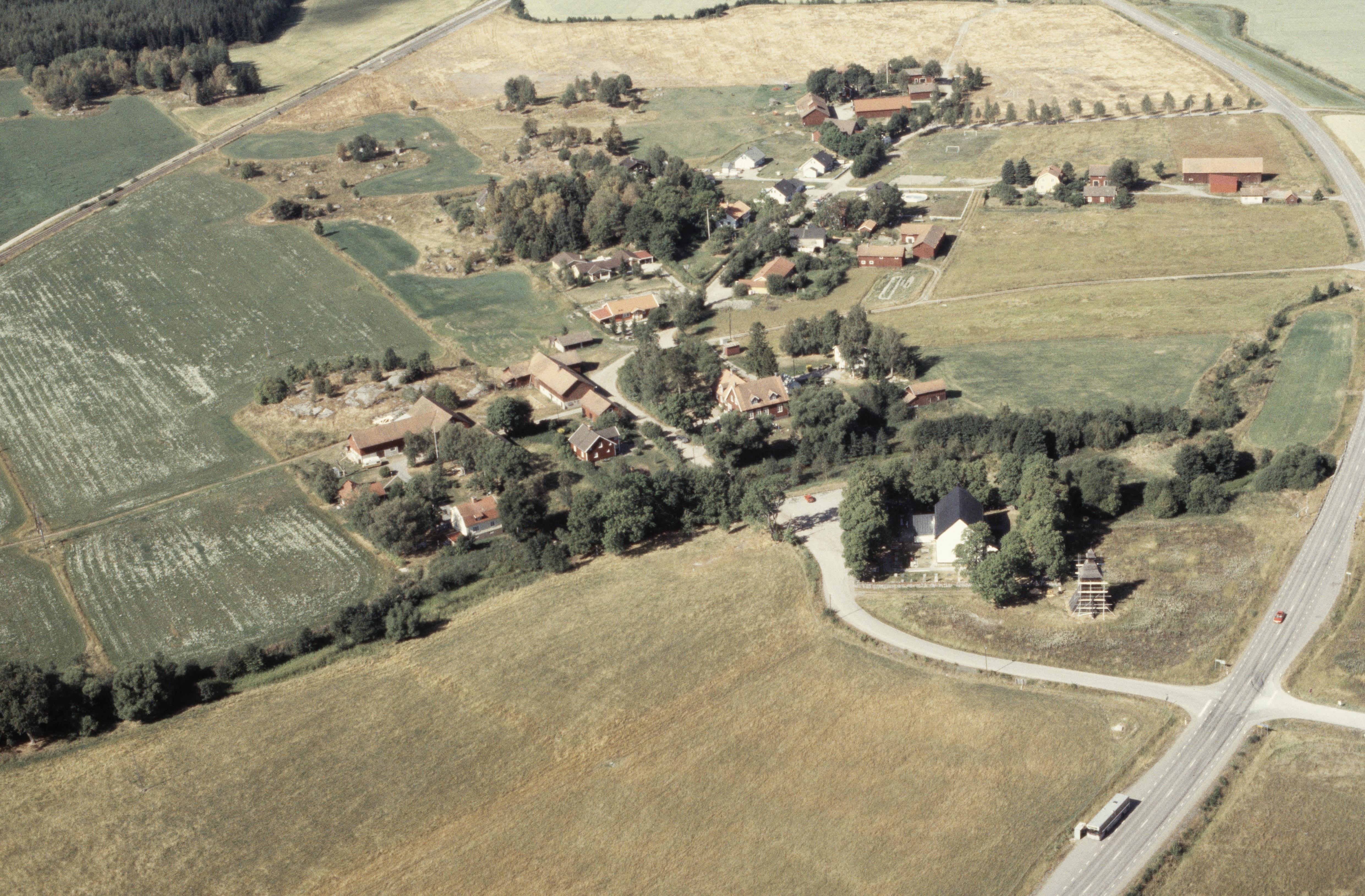 Sävaån vid byn Västerby-Åland. Nere till höger Ålands kyrka RAÄnr Åland 39. Bilden är tagen mot (väderstreck): V