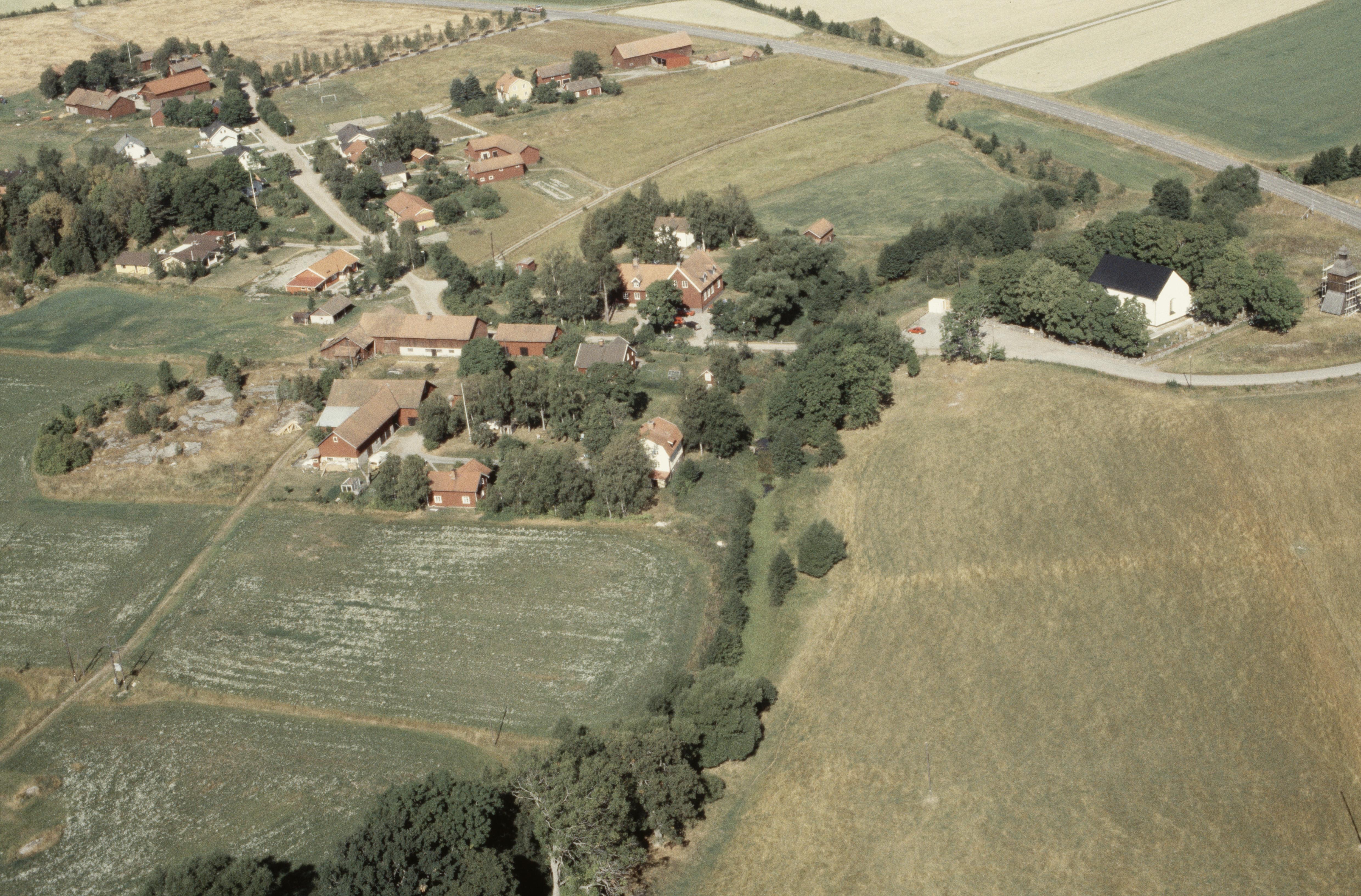 Sävaån vid byn Västerby-Åland. Uppe till höger Ålands kyrka RAÄnr Åland 39. Bilden är tagen mot (väderstreck): NV