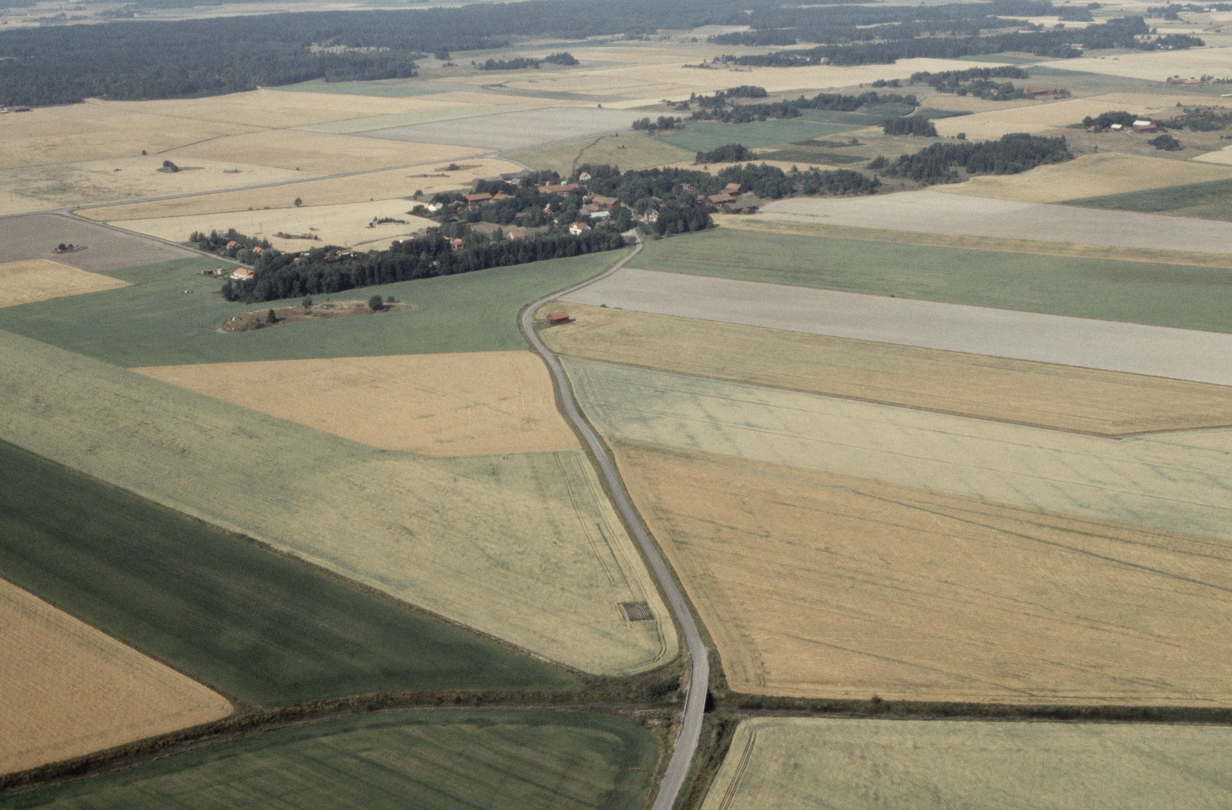 Fjärdhundrabygden. I bildens nedre kant Örsundaån vid gränsen mot socknet Frösthult och Gästre by. Till höger i bildens nedre kant vadställe i Örsundaån RAÄnr Simtuna 160:1 sydväst om Hjältberga gård. Bilden är tagen mot (väderstreck): VSV