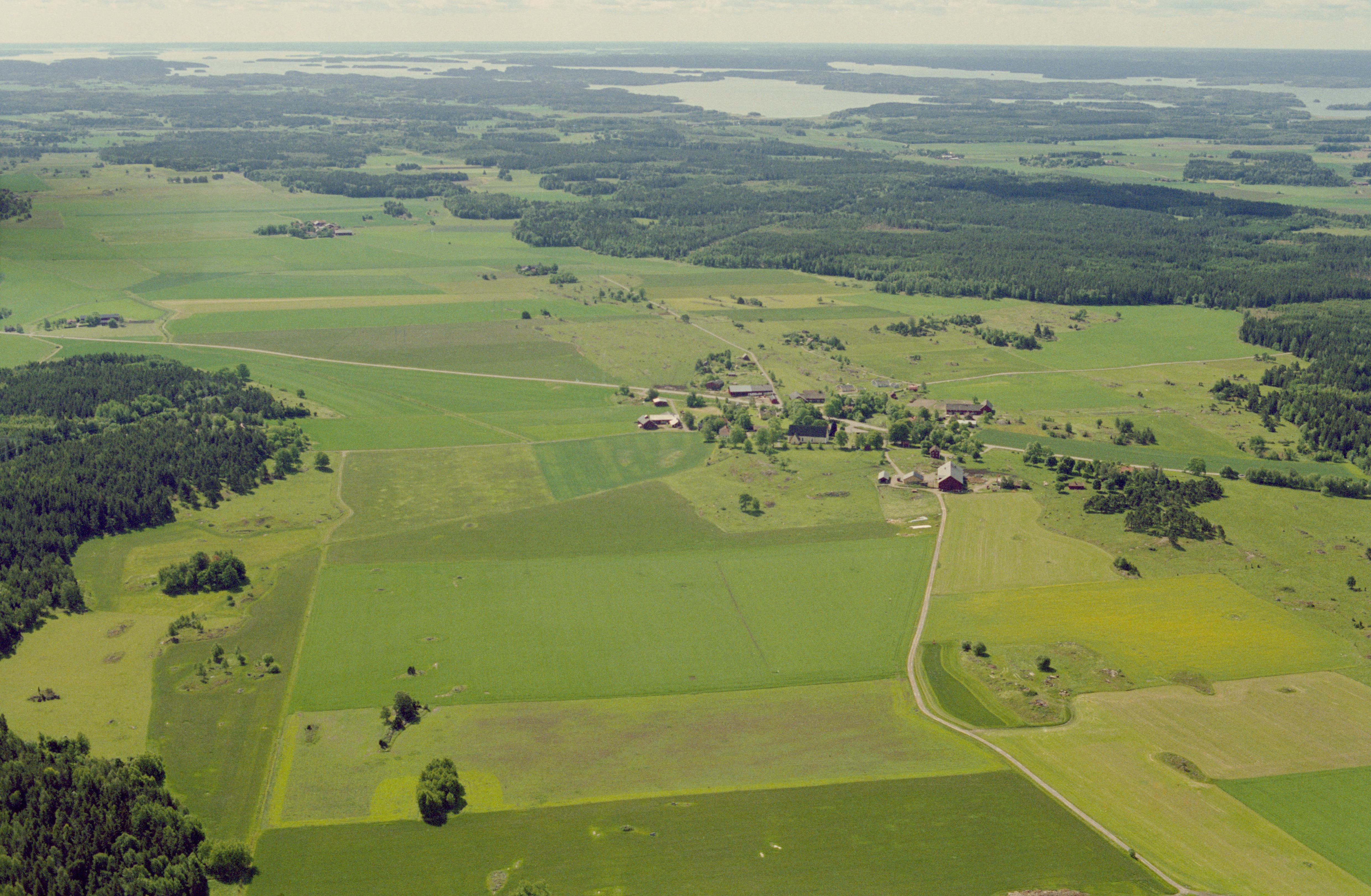 I bildens nedre del till höger område med hällristningar RAÄnr Boglösa 163:1, 329:1, 365:1-2. Vid bildens mitt Boglösa kyrka och kyrkby. I bildens övre del socknen Lillkyrka, Vallby, Kungs-Husby m.fl. mot Stabyfjärden i Mälaren. Bilden är tagen mot (väderstreck): S