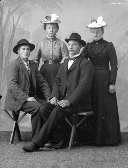 Titel: Ateljé. Två damer, två herrar. Fotograf: Ellen Kock? Axel Lundbäck m.fl. Gullspångssamlingen. Bilder från Gullspång med omnejd.