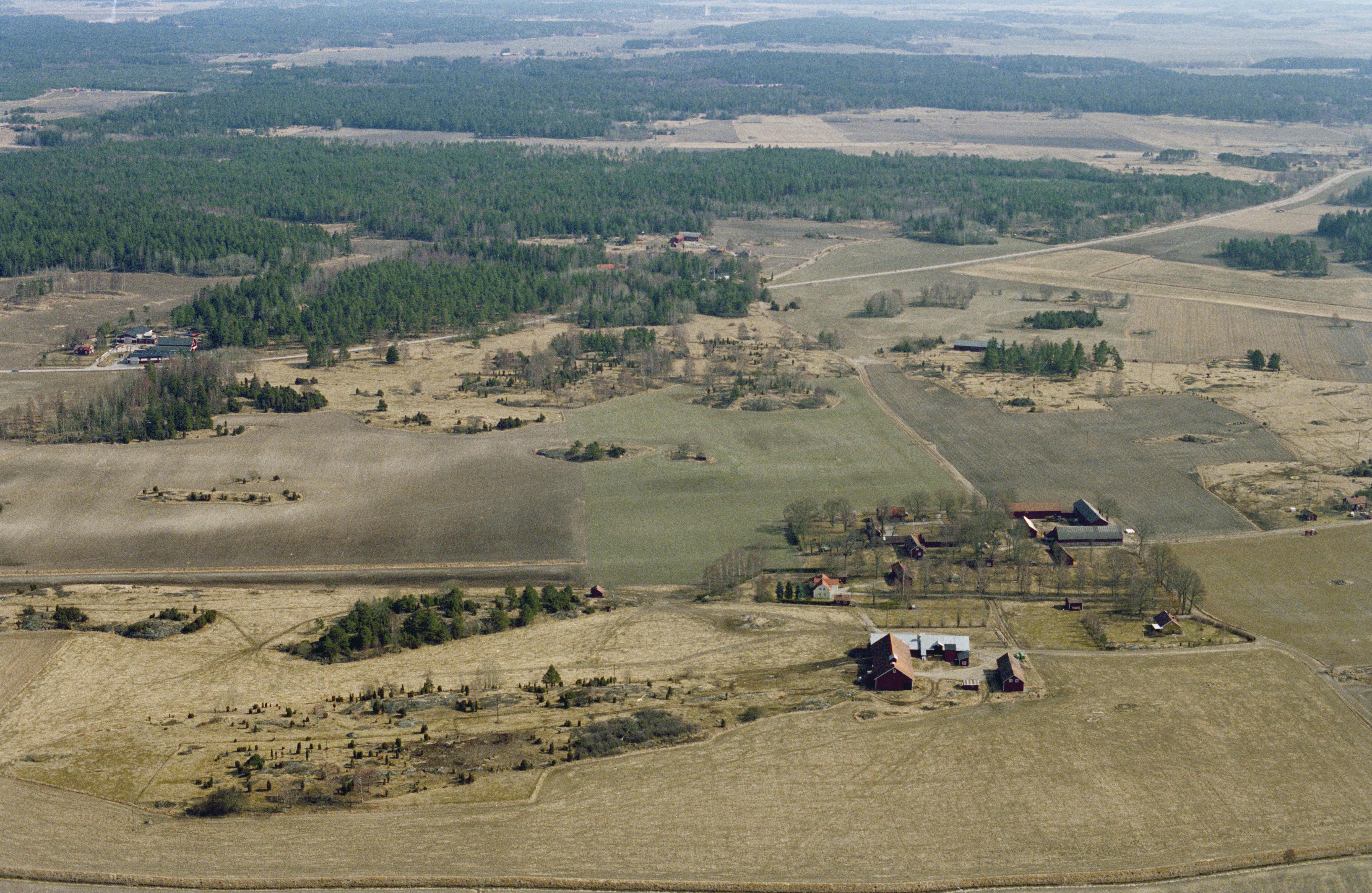 Hemsta by. Vid bildens mitt grav- och boplatsområde Sundbacken med hällristningar RAÄnr Boglösa 130:1, 203:1-2 m.fl. i Hemsta naturreservat. Bilden är tagen mot (väderstreck): Ö