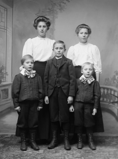 Hilda, gift Andersson, Selma, gift Dahlkvist, Birger, Erik och Isak.