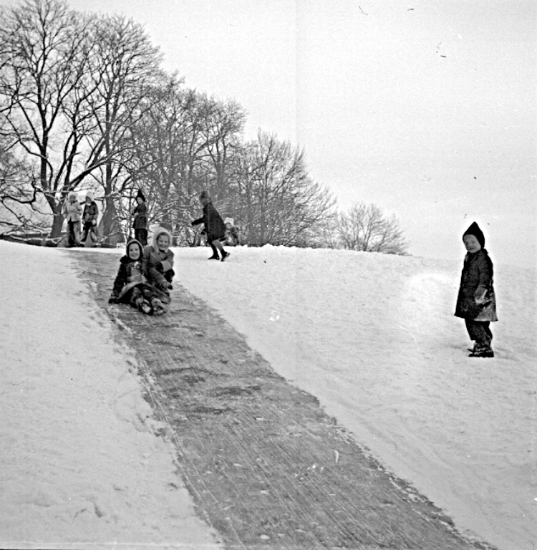 Skara. Brobacka. Pulkåkning.