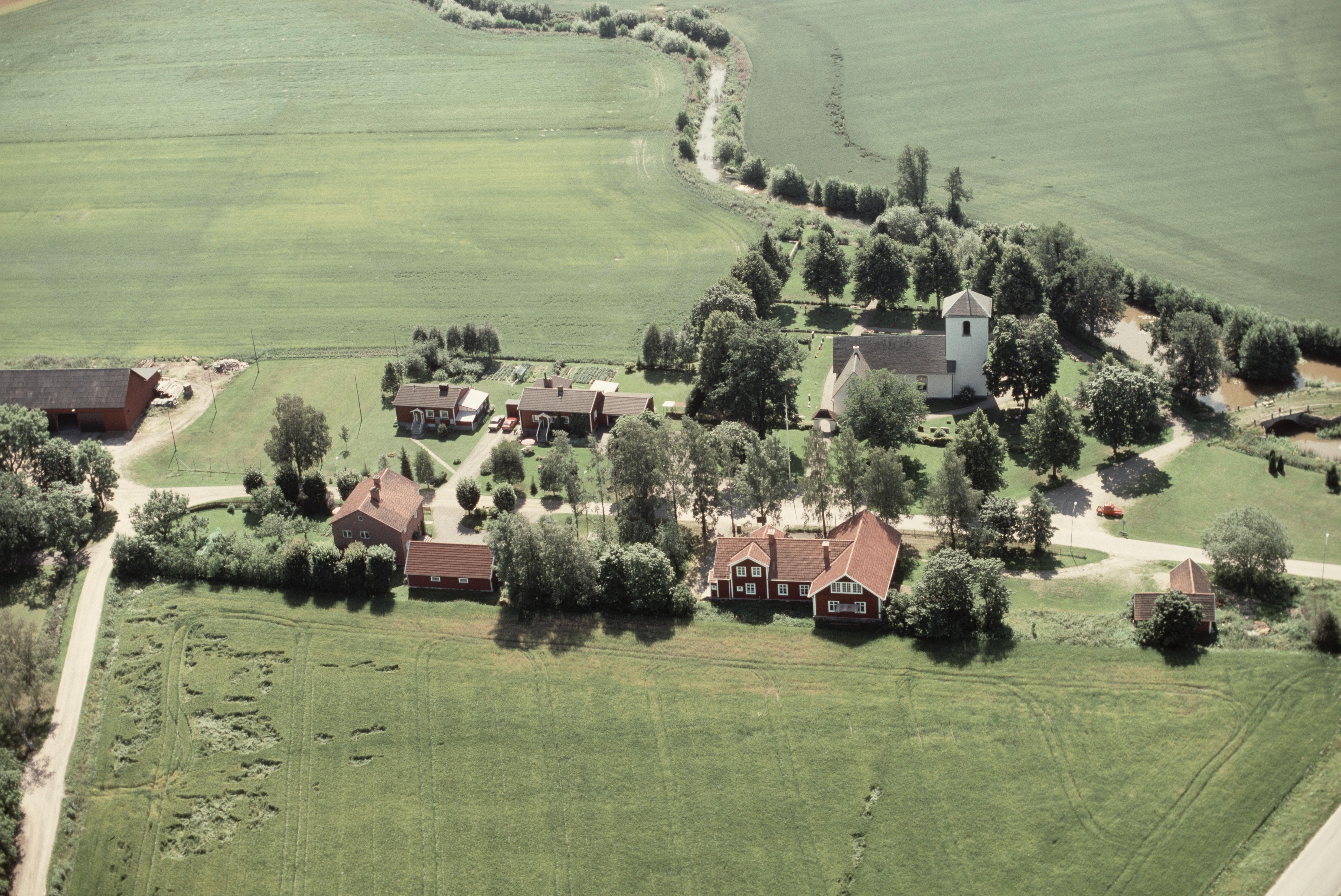 Täby kyrka och kyrkby vid Täljeån. Bilden är tagen mot (väderstreck): S