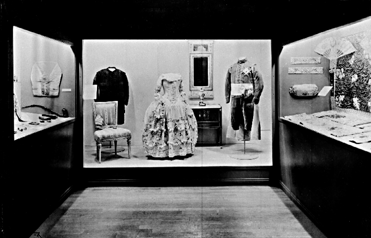 Högreståndsavdelningen. Monter för dräkt och textilier samt möbler.