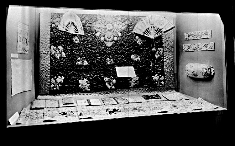 Högreståndsavdelningen, monter med textilier.