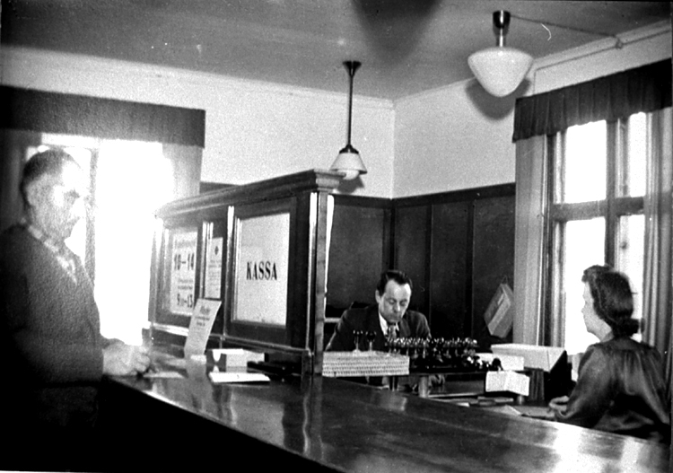 Skaraborgsbankens kontor i gamla bankhuset, Älgarås vid början av 1940-talet.