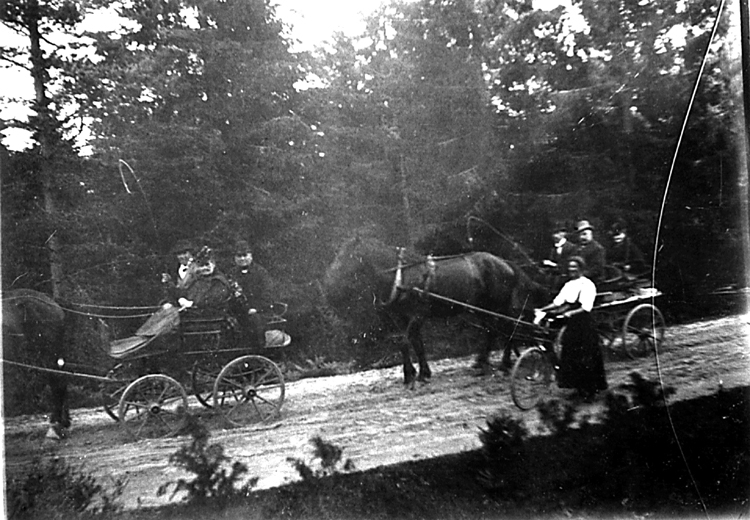 I andra vagnen (långfjädervagn) en broder till B. Lundberg, Axel, med hustru. Axel Lundberg hade en stor manufakturaffär vid torget i Uddevalla.