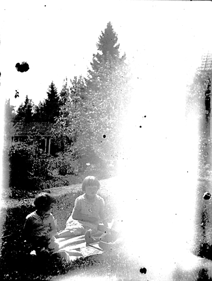 Brita och Anita Andersson på besök hos mormor och morfar i Skogshyddan, Borggårds bruk, Östergötland.